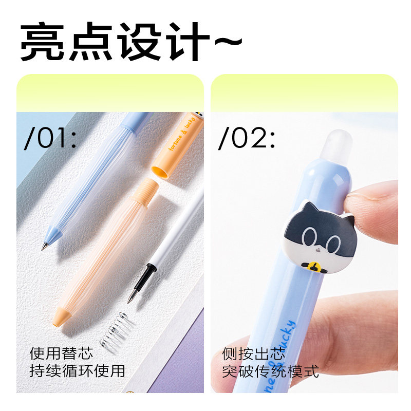 📚 得力可擦中性笔三顾喵庐小学生用3-5年级可擦笔黑色按动子弹头0.5mm写错即擦笔儿童写字水笔摩擦热可擦晶蓝