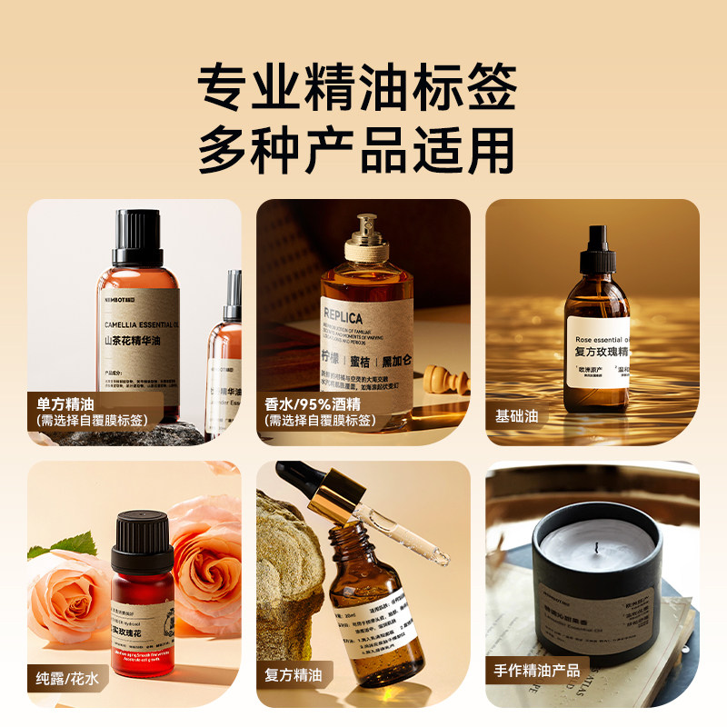📚 精臣M2精油标签纸单方复方香水美妆小样分装瓶身瓶盖不干胶贴纸防水防油logo二维码透明自粘膜标签打印纸