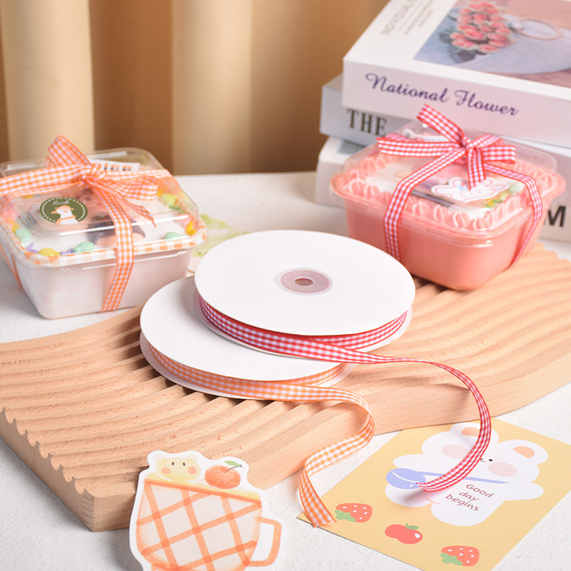📚 红色格子丝带蛋糕装饰烘焙甜点打包礼物包装黄色英伦格子丝带1cm