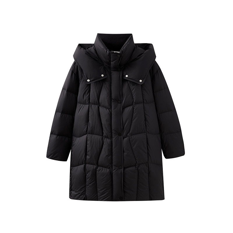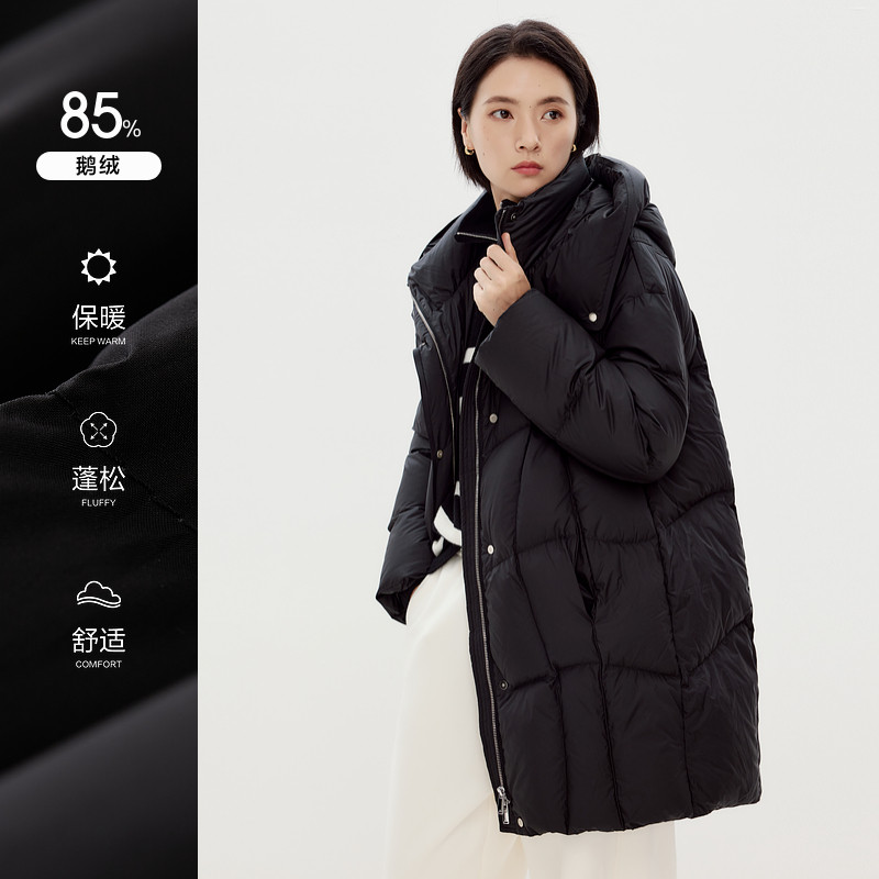 📚 水云间黑色立领羽绒服厚女鹅绒连帽外套防风保暖中长款2025冬新款