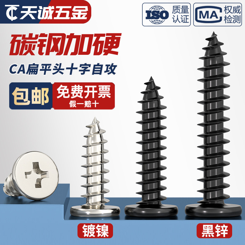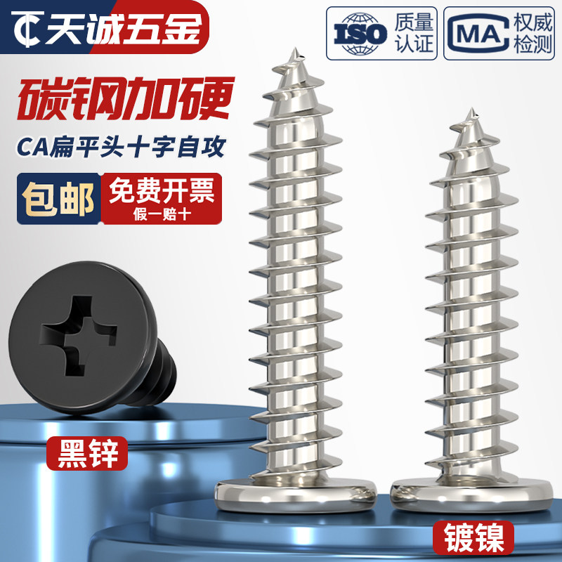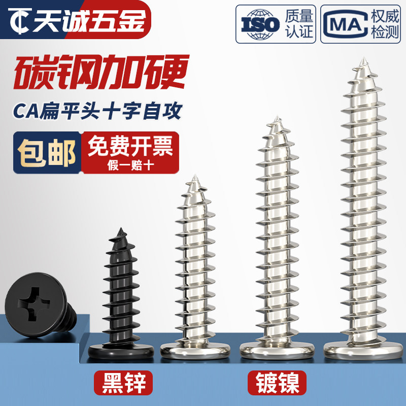 📚 CA铁镀镍/黑色扁平头十字自攻螺丝钉大扁薄头子平头尖尾木自攻丝