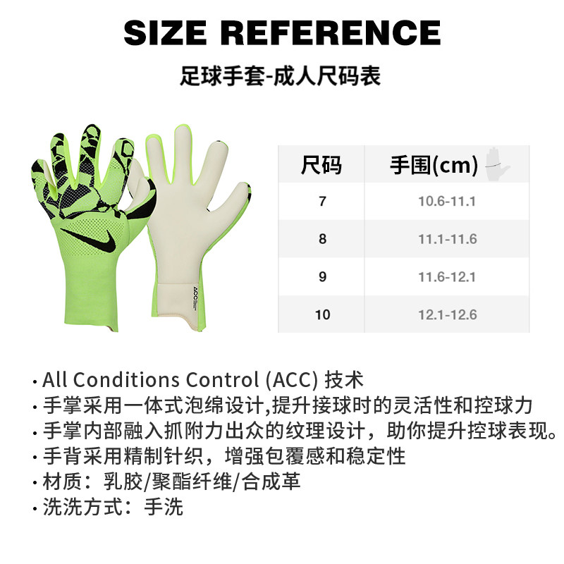 📚 酷锐足球耐克高端足球比赛训练运动防滑门将守门员手套HQ0259-702