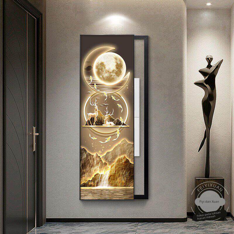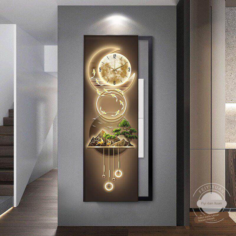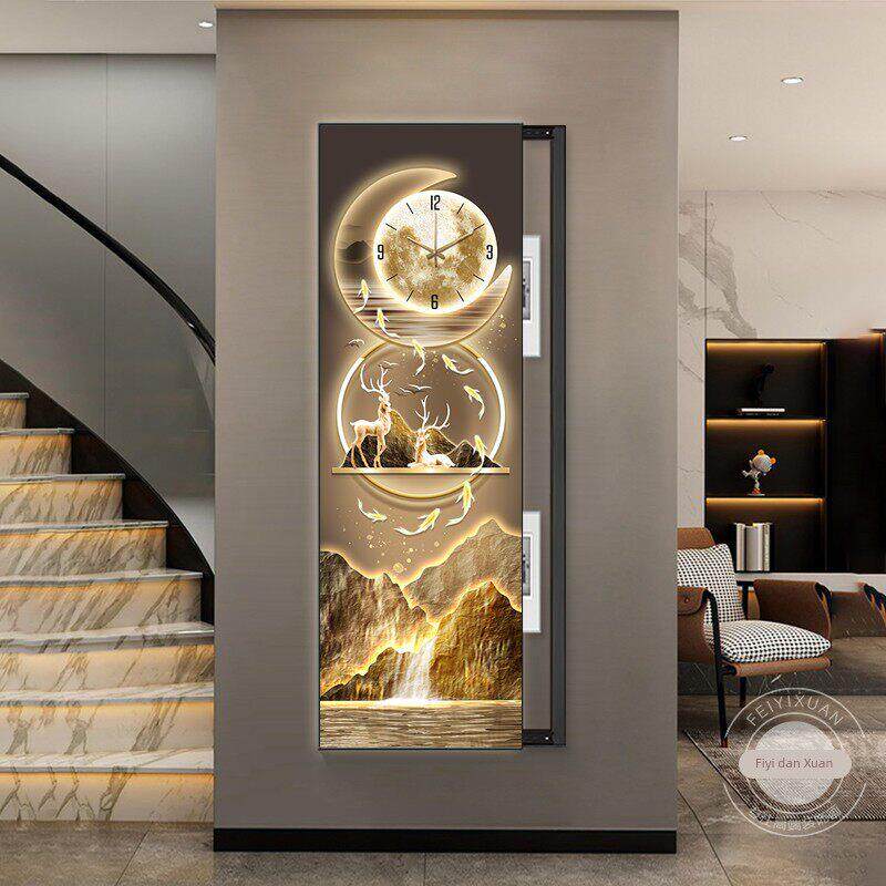 📚 九鱼聚福电表箱装饰画竖长条带钟表大尺寸遮挡弱电闸盒水电井挂画