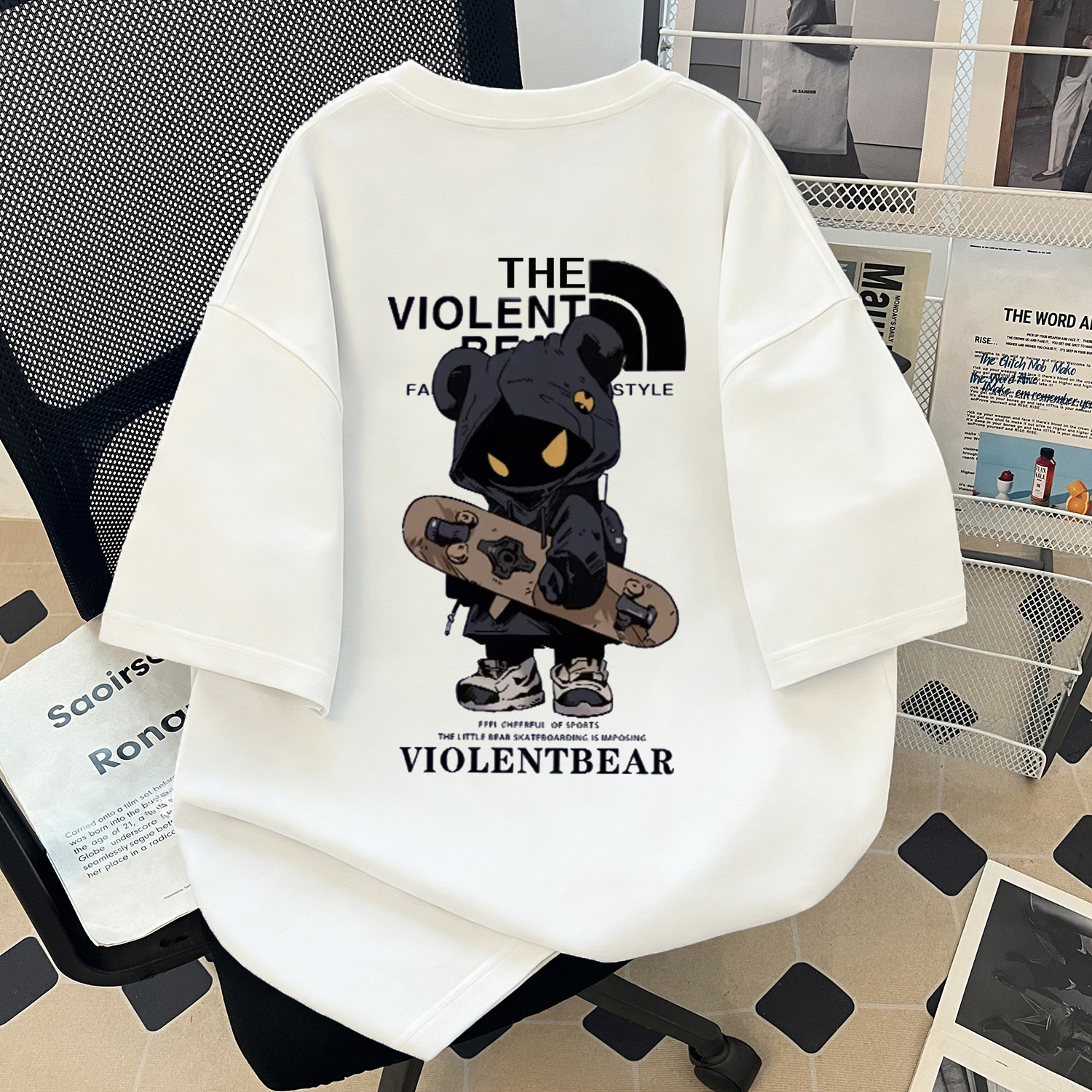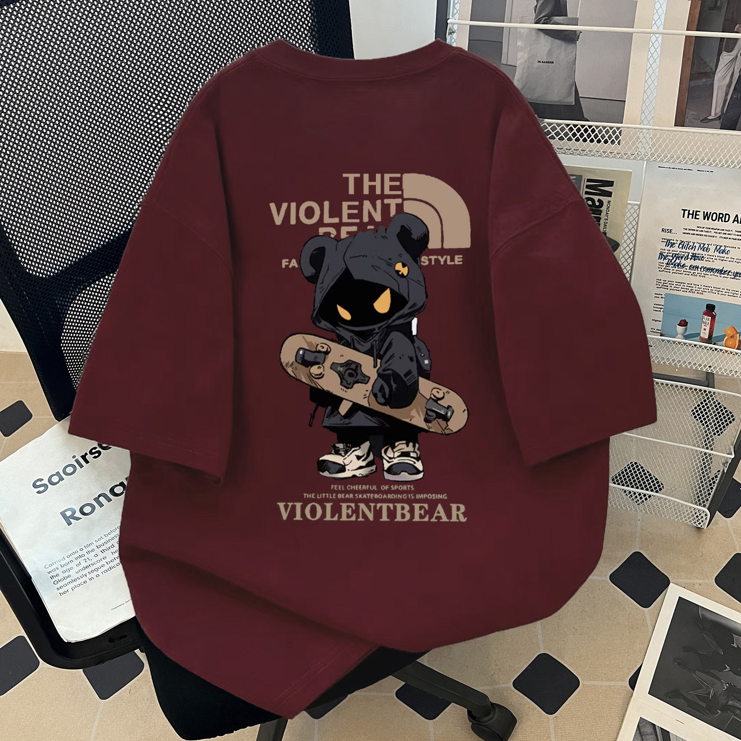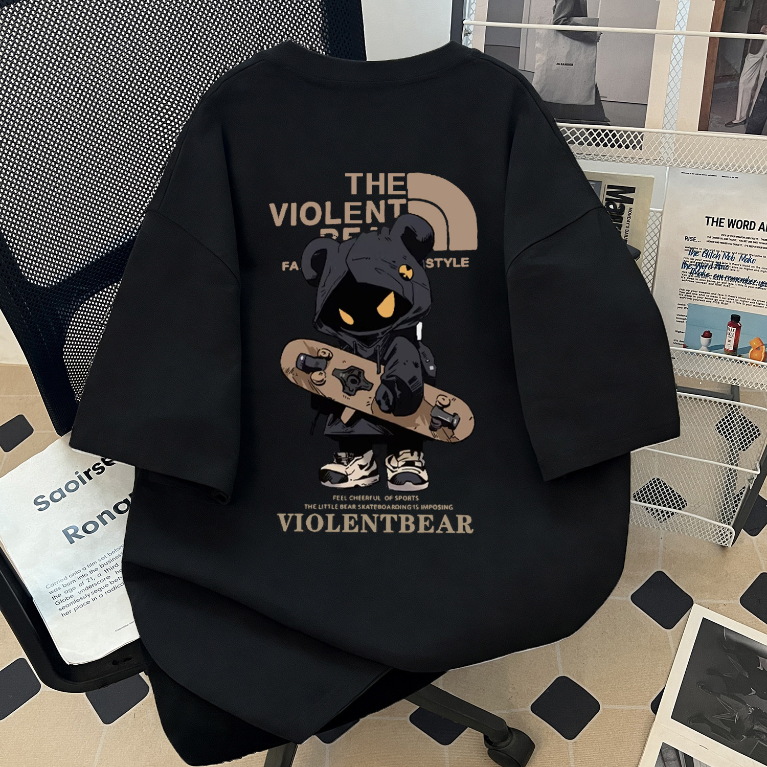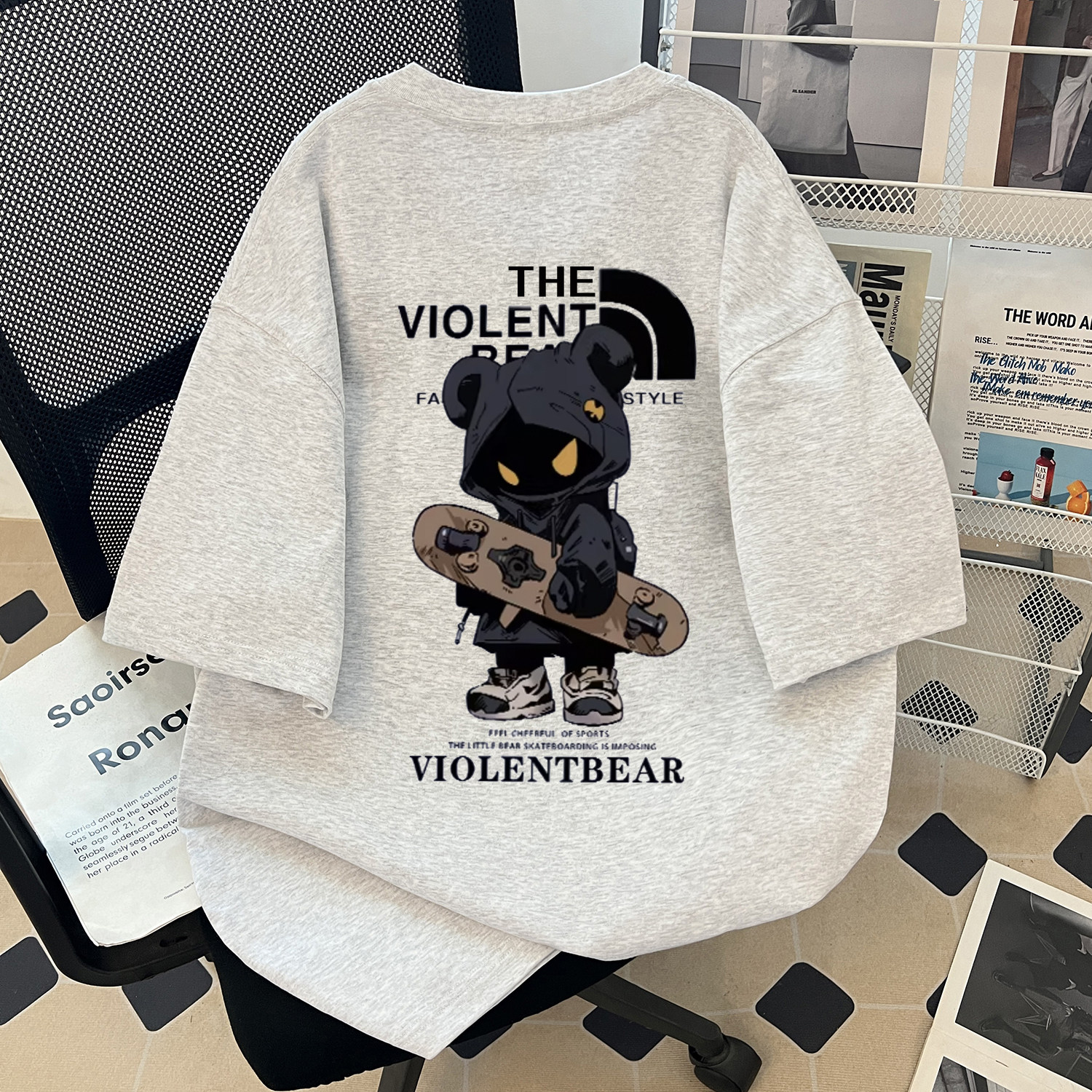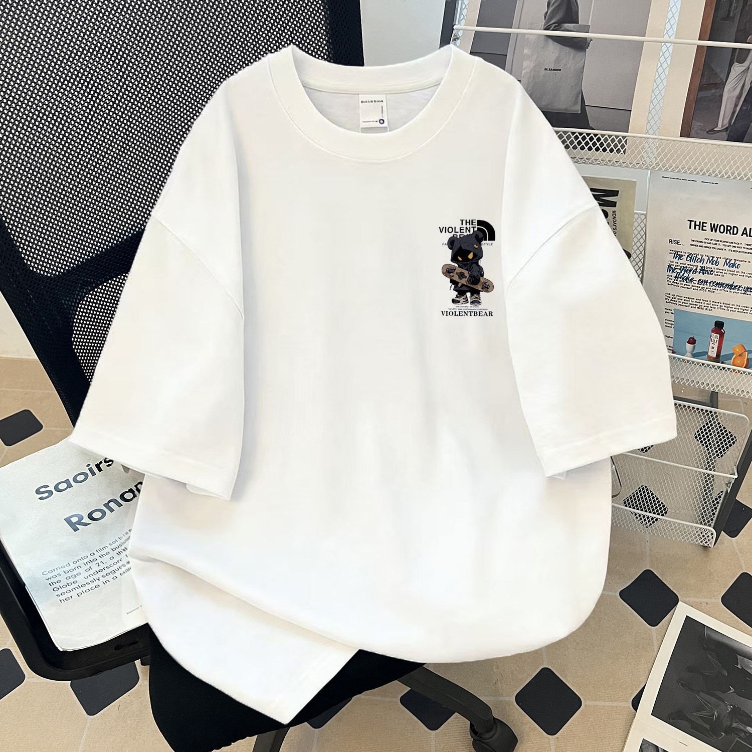 📚 美式风暴力熊印花短袖T恤男女宽松纯棉情侣装夏季宽松百搭上衣潮