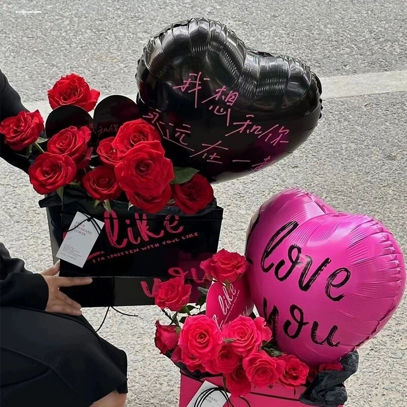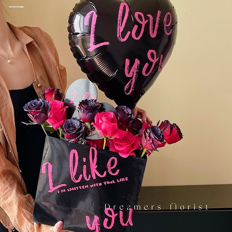📚 花中情 网红love铝膜气球玫瑰花束抱抱袋鲜花包花装饰手工diy花艺