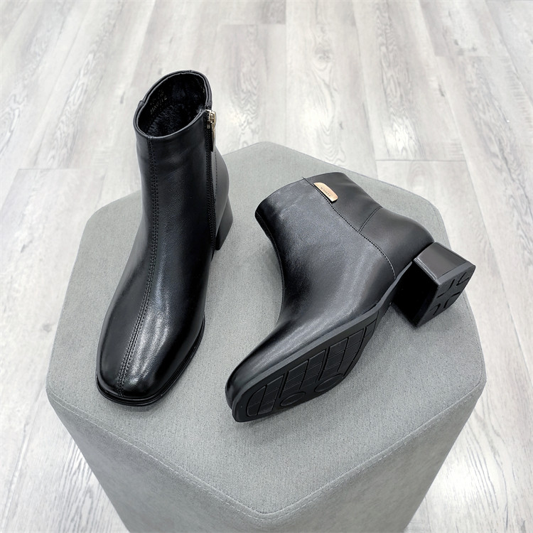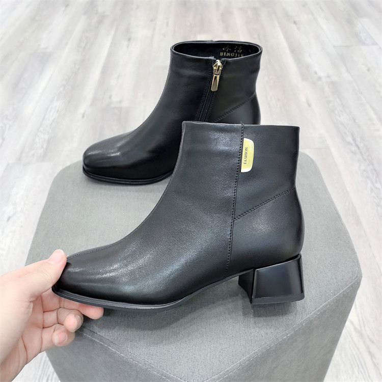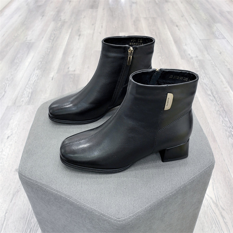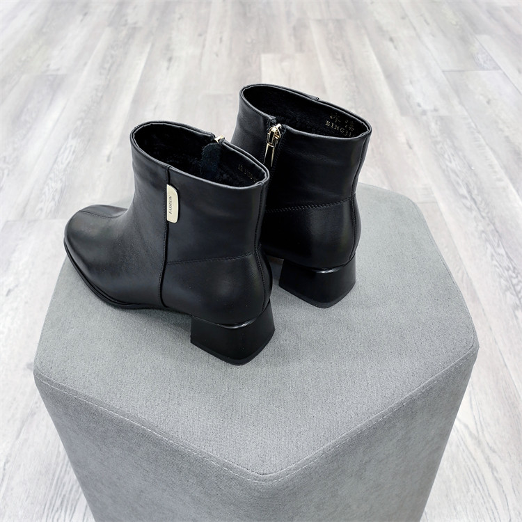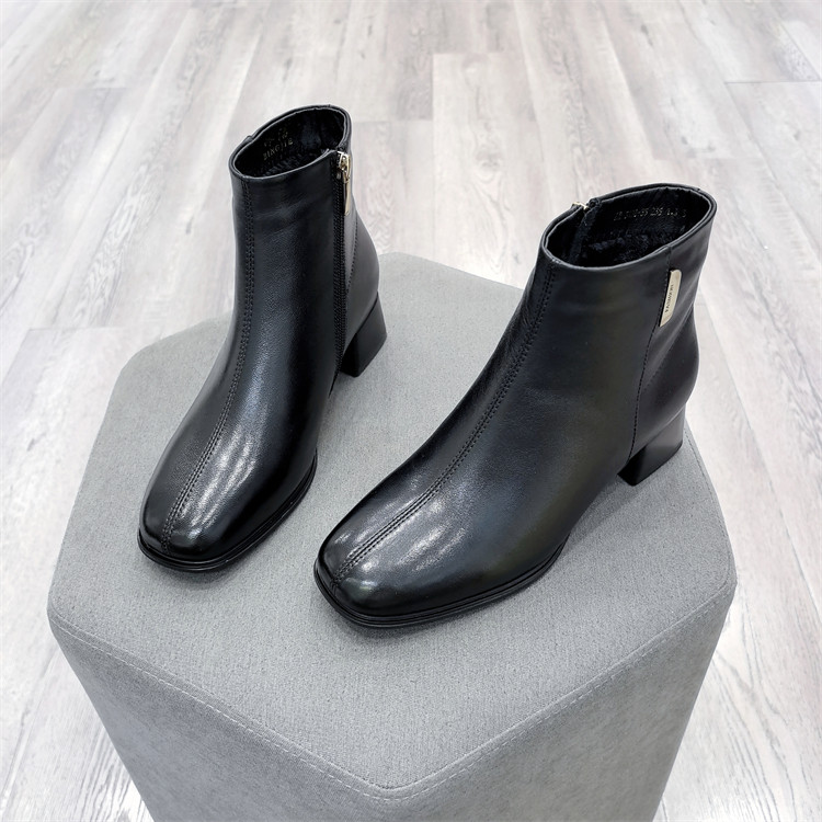 📚 冰洁2025冬季新款女鞋羊皮中粗跟加绒保暖侧拉链简约短靴3130-35