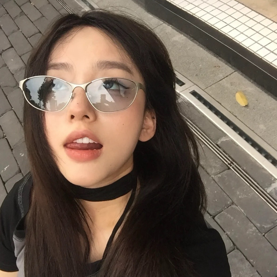 📚 上佳出片神器银框浅蓝片美式猫眼造型太阳眼镜高级感Y2K防晒墨镜