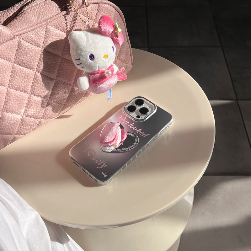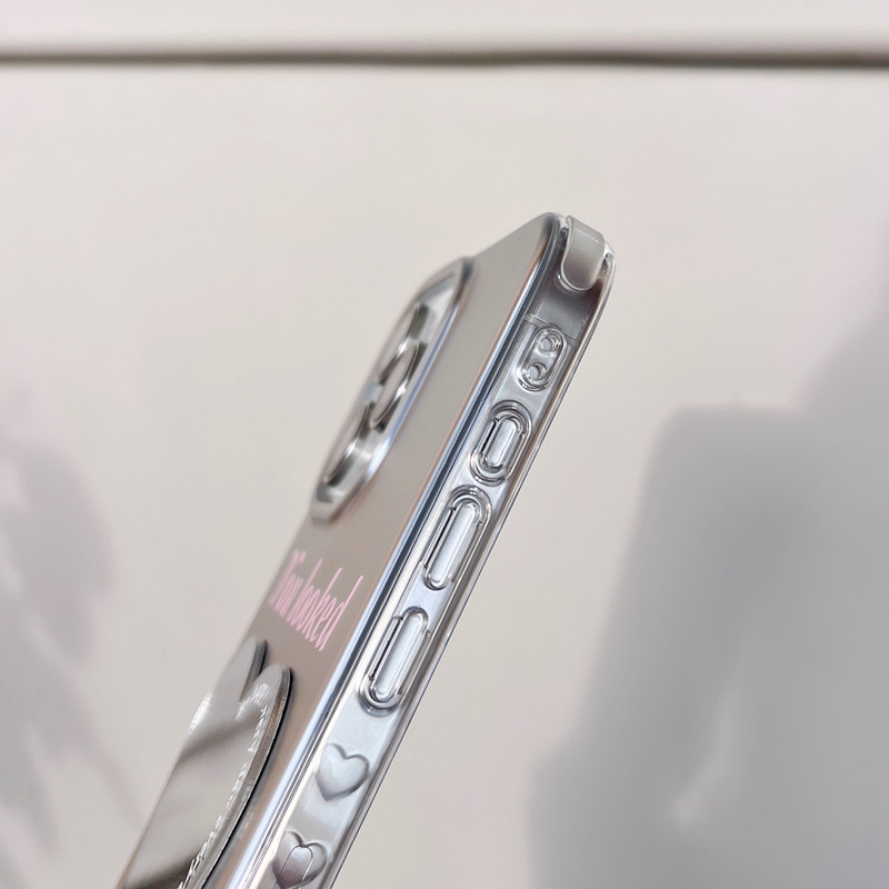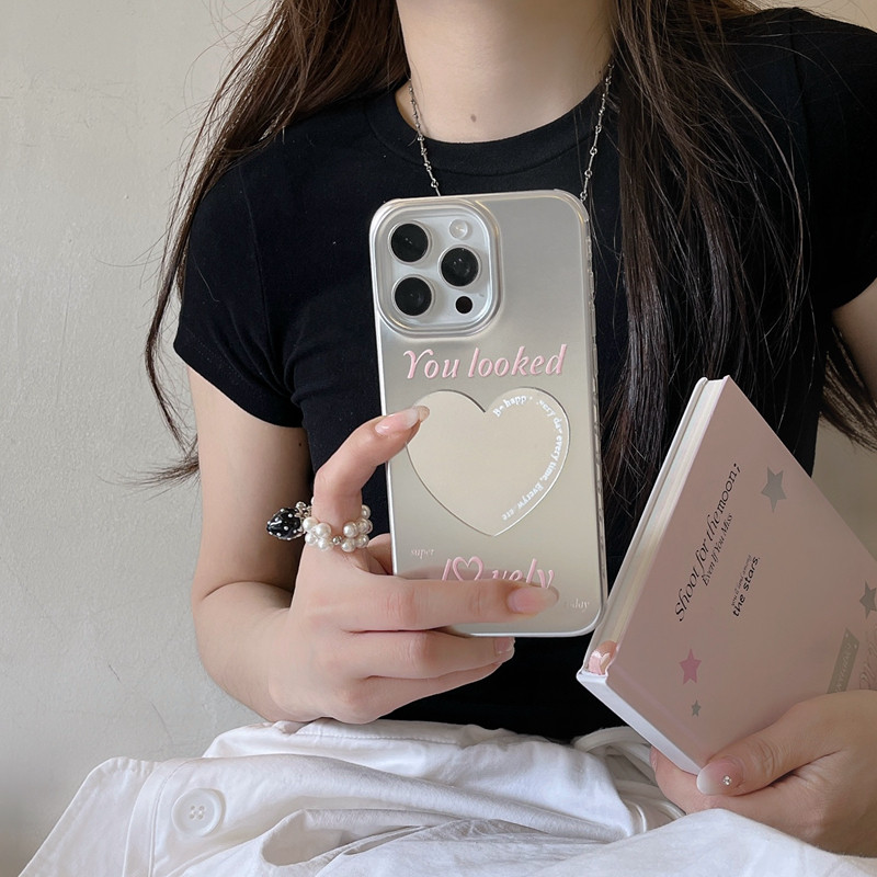 📚 小众简约爱心镜子适用于苹果iPhone16promax手机壳新款17/15/14高级感保护套心形补妆镜防摔全包13保护壳女款