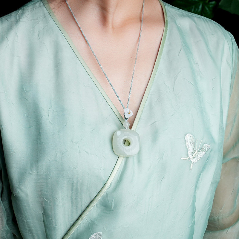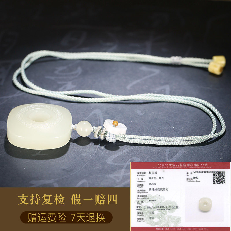 📚 玉友和田玉平安扣吊坠男女款玉坠仿古方形玉璧玉佩玉石挂件附证书