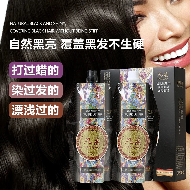 📚 凡高黑油染发剂不沾头皮清水自然黑男士女士盖白发黑油持久染发膏