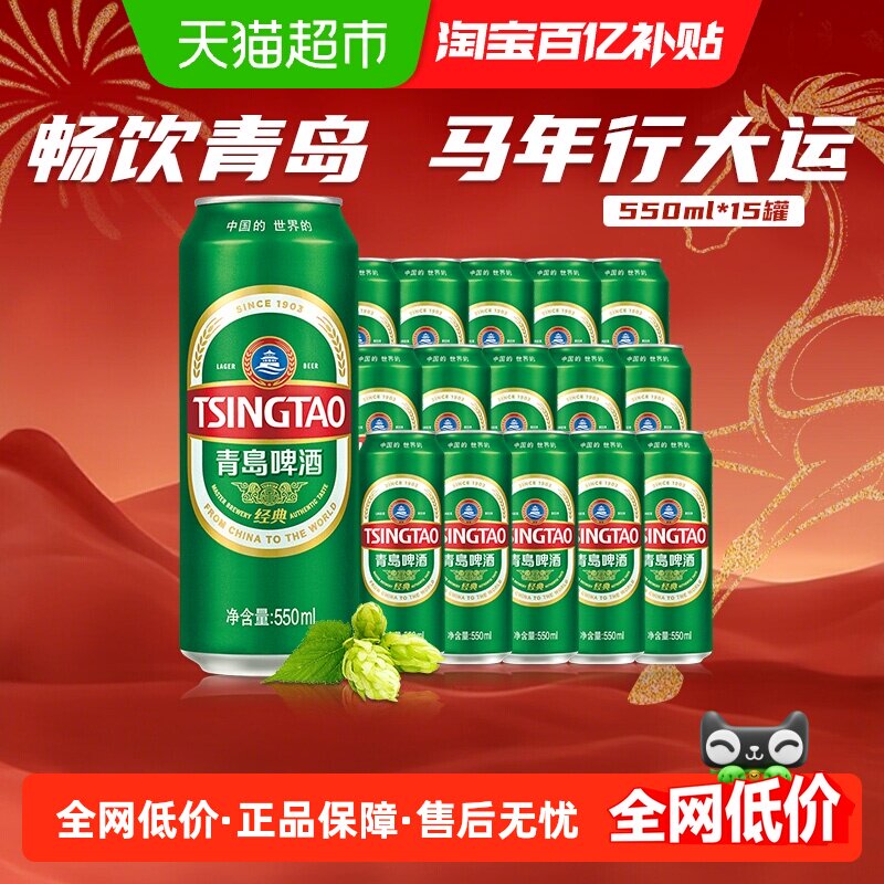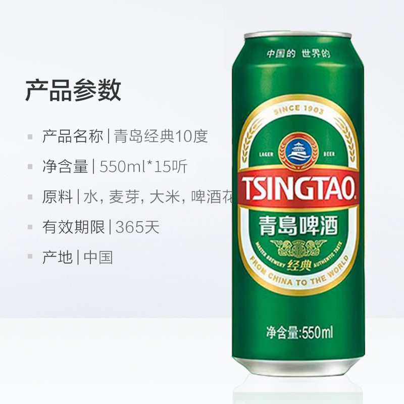 📚 青岛啤酒经典10°550ml*15听整箱顺滑细腻醇正