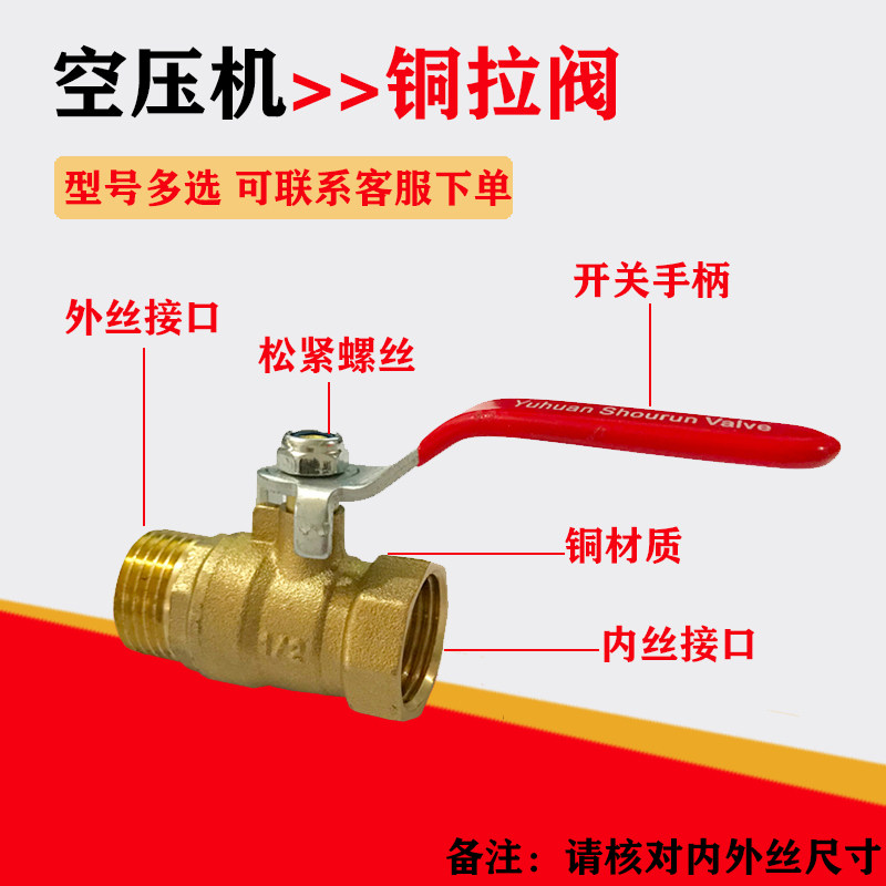 📚 空压机配件气动开关放气阀门加厚铜球阀2分4分内外丝气泵拉阀针阀