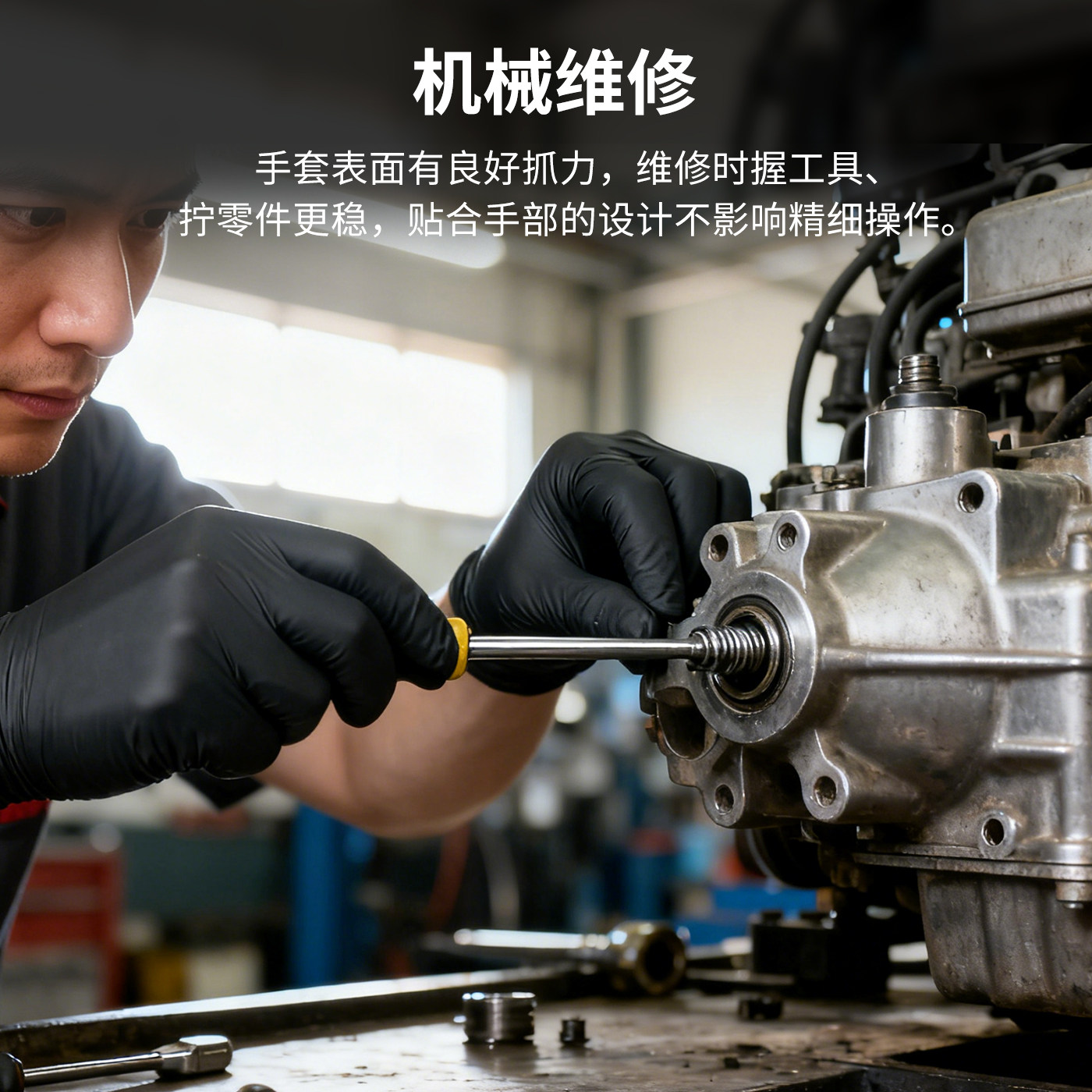 📚 浙里护维修专用手套黑色耐磨防油污加厚工业汽修工地防护丁腈手套
