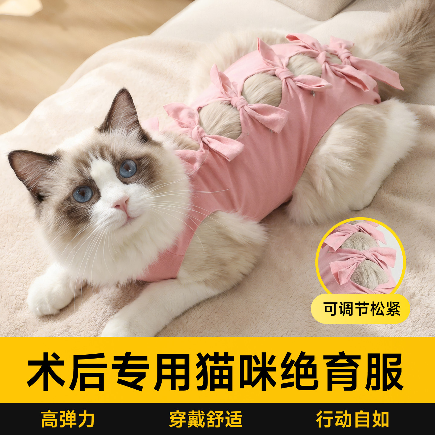 📚 绝育服母猫术后服猫咪手术衣防舔透气可调节绑带猫护肚子专用四脚