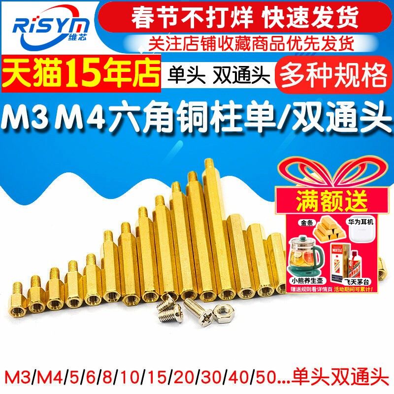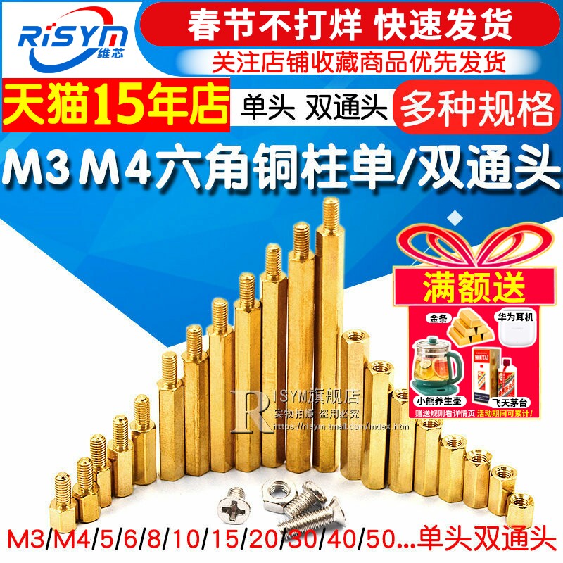 📚 六角铜柱M3M4单头铜螺柱主板螺丝螺母隔离柱双通电路板固定铜支柱