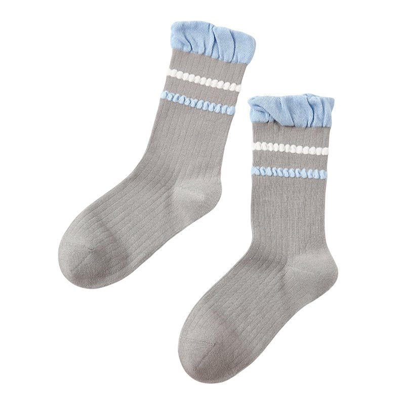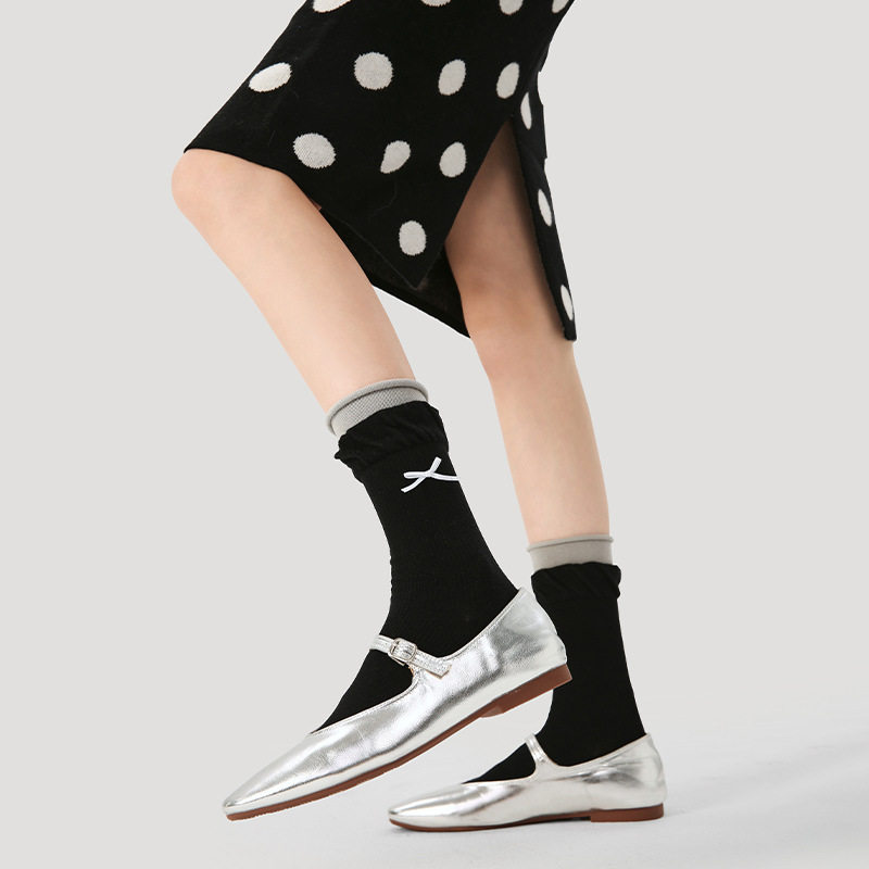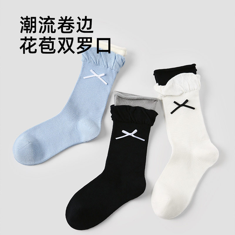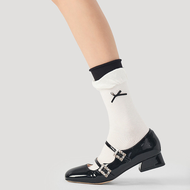📚 Renaissance创意蝴蝶结双罗口袜子女秋季新款撞色潮搭miu风中筒袜