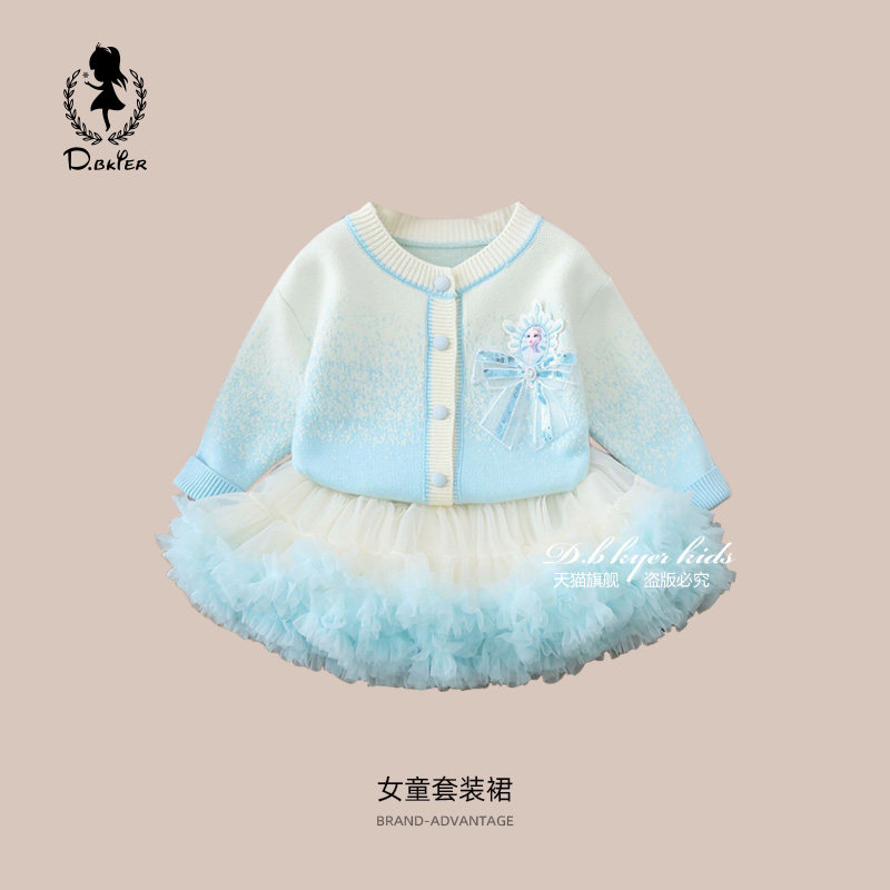 📚 D.Bkyer女童爱莎公主裙春装生日套装儿童tutu裙针织巨好看裙子春