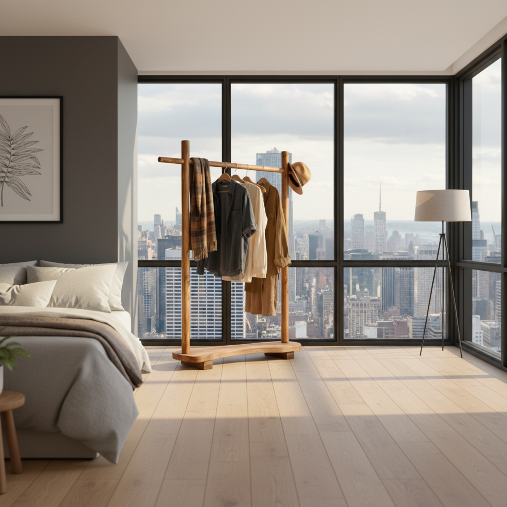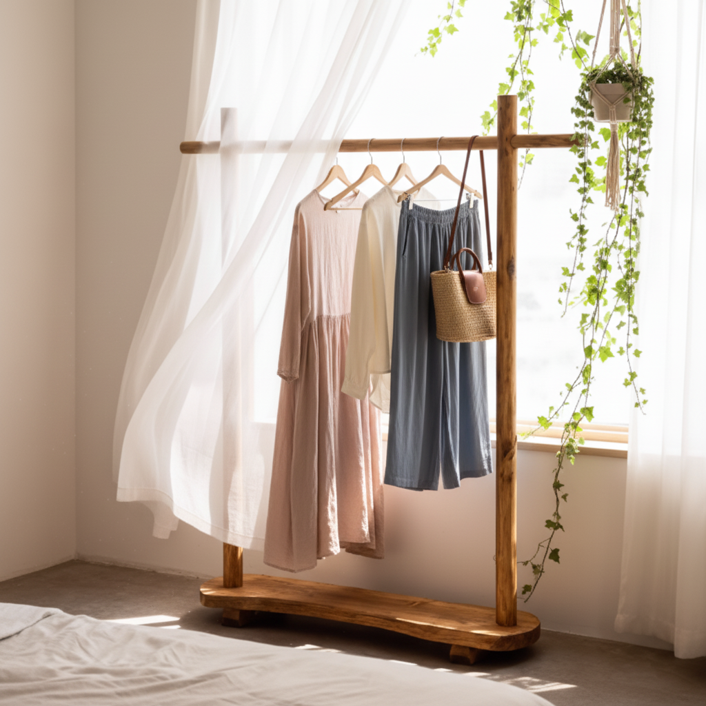 📚 家用实木挂衣架服装店衣服展示架原木风橱窗挂架落地式服装收纳架