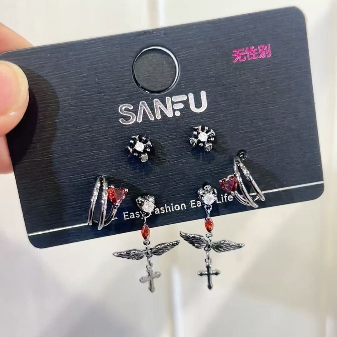 📚 恋与深空 秦彻暗黑幻翼耳钉甜酷独特小众轻奢气质高级感新款耳饰