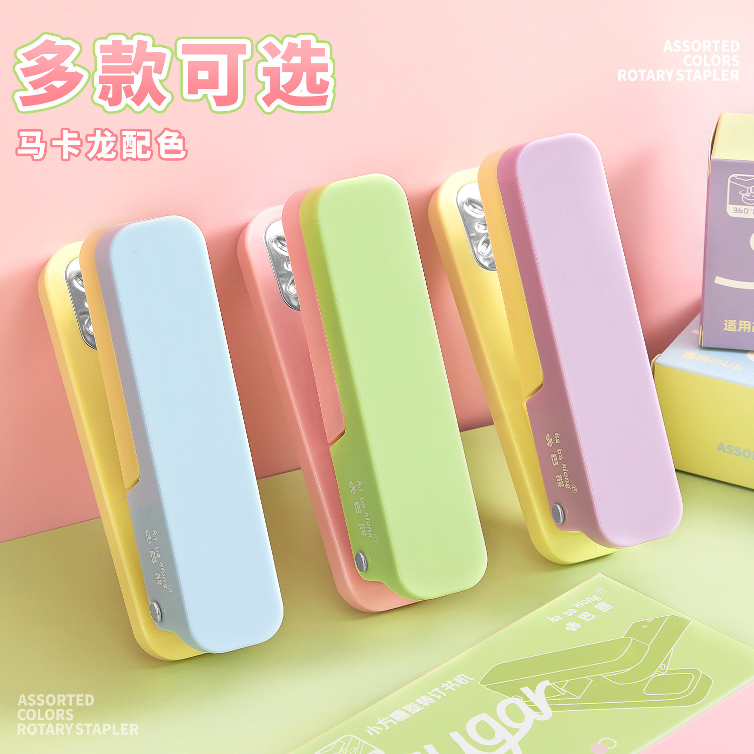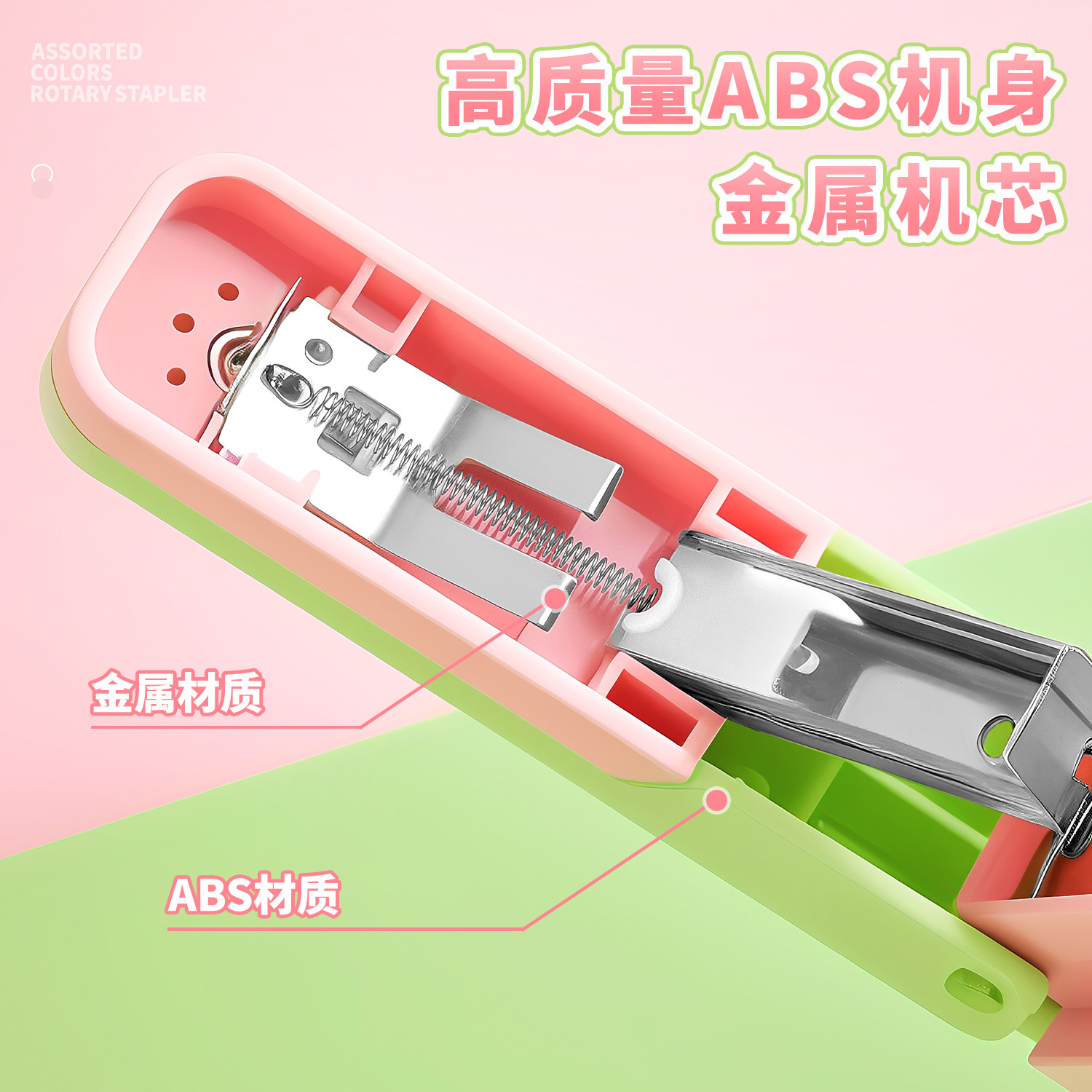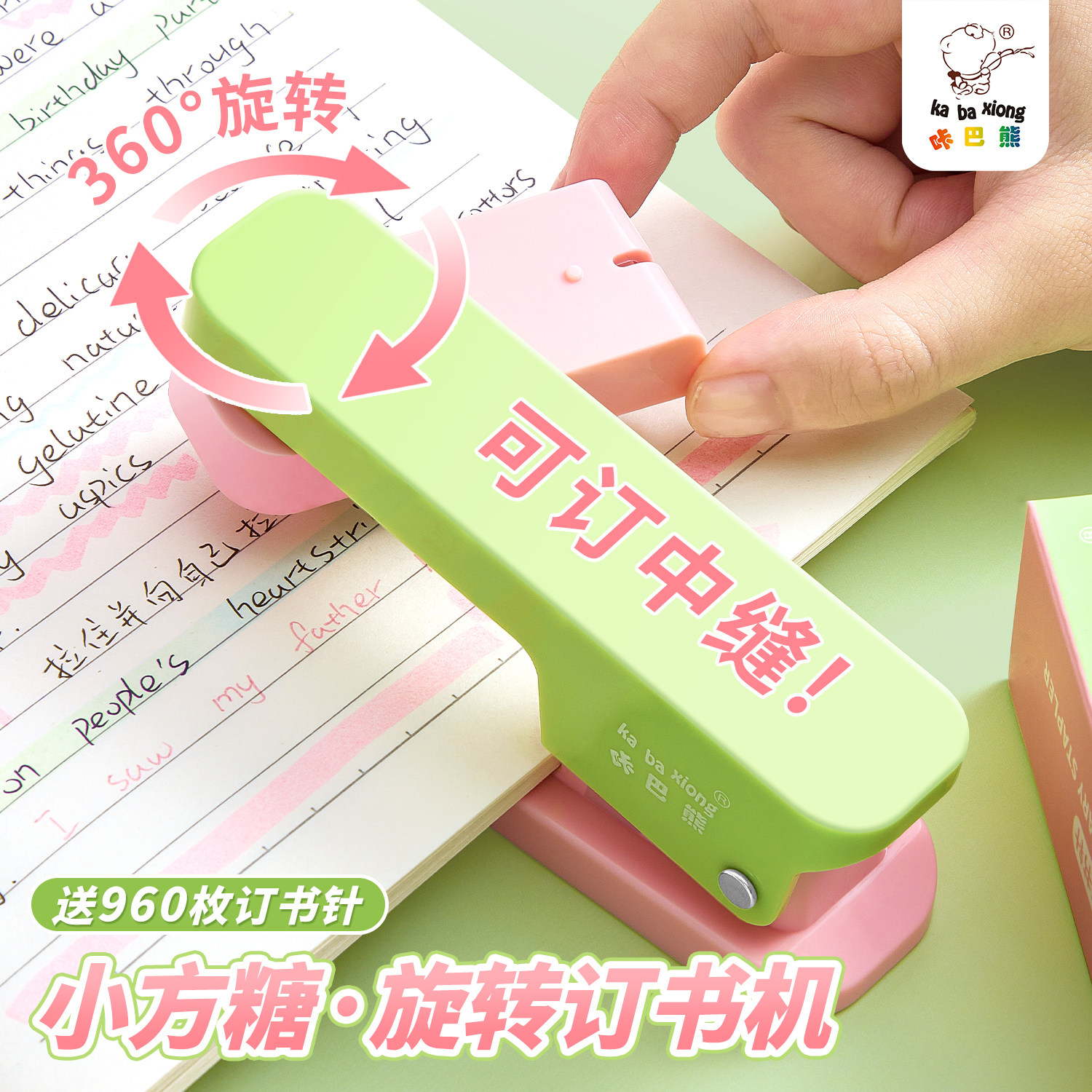 📚 高颜值可旋转订书机学生专用可钉中缝手握订书器装订机大号重型加厚省力型钉书机办公家用起钉器便携订书神器