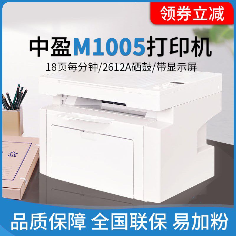 📚 中盈M1005激光打印复印扫描一体机替hp1005 办公黑白可加粉打印机