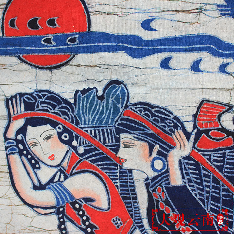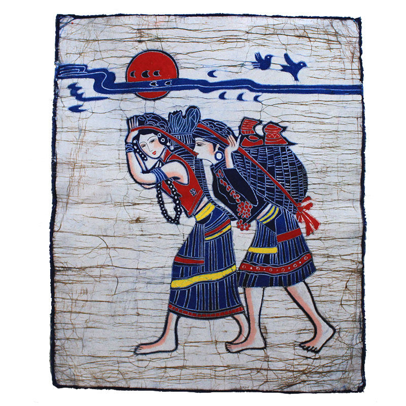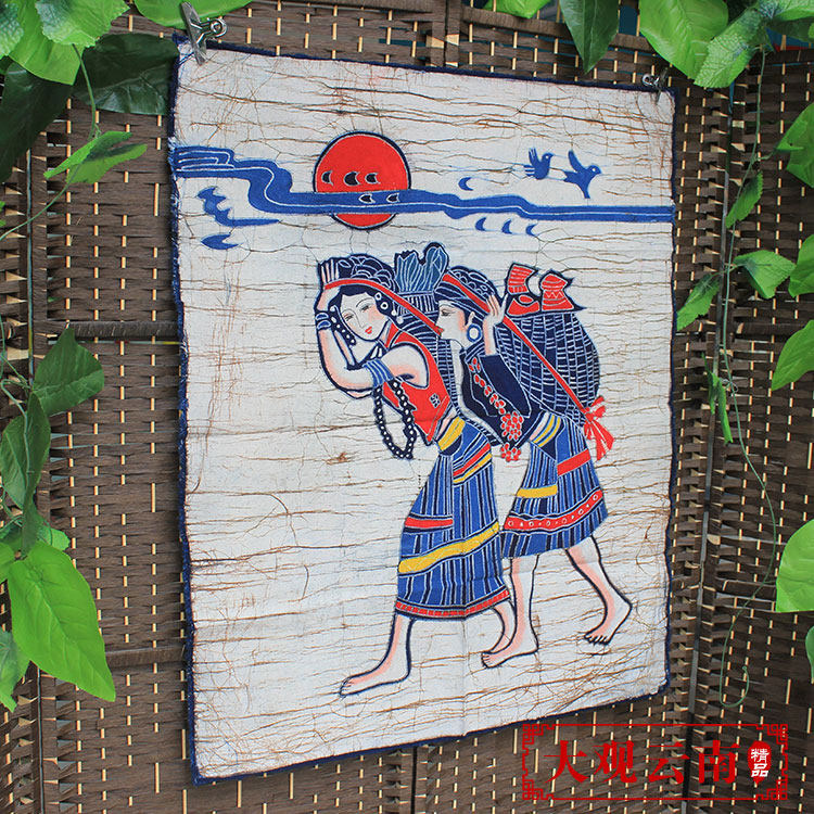 📚 中号蜡染画佤族山行云南民族挂画餐厅茶室装饰画棉布手工特色礼品