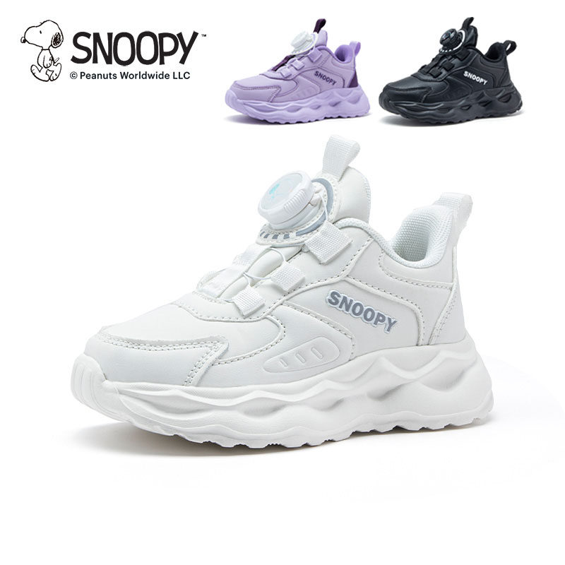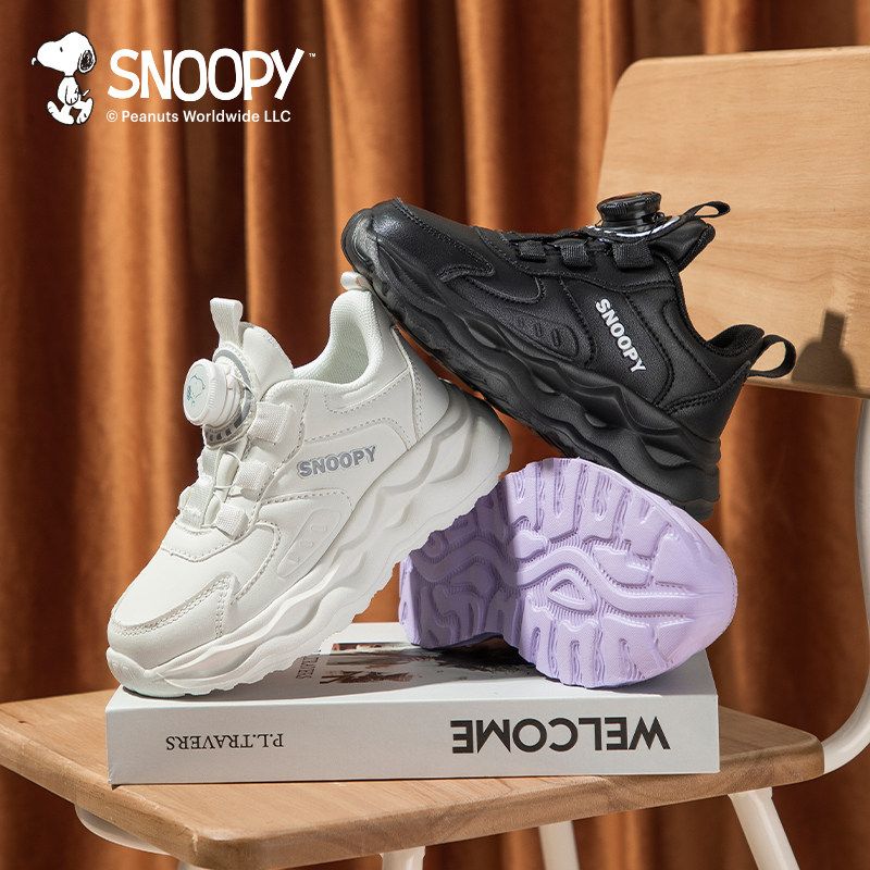 📚 史努比男童运动白鞋子2025秋季女中大童旅游鞋皮面防水跑步鞋黑色