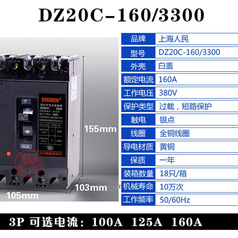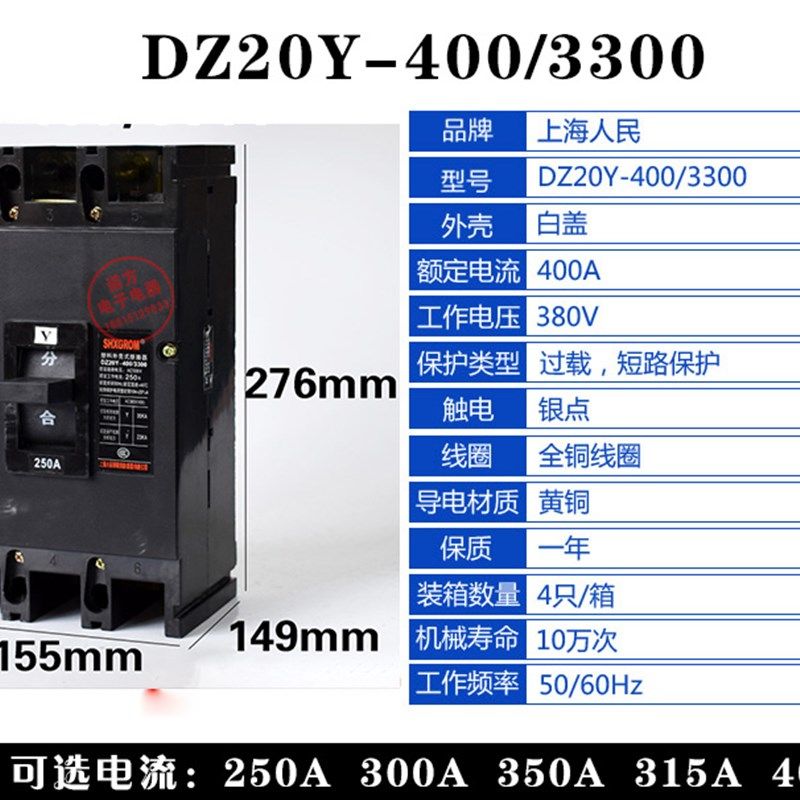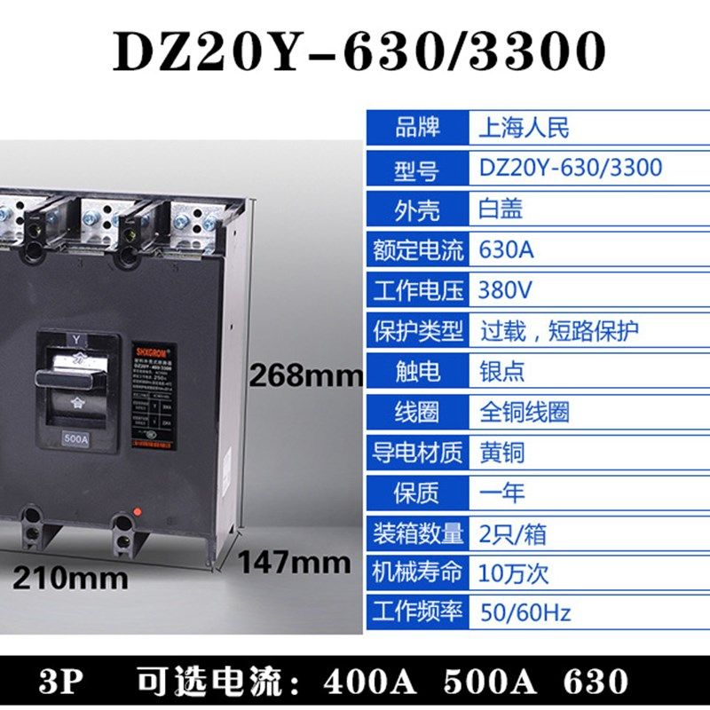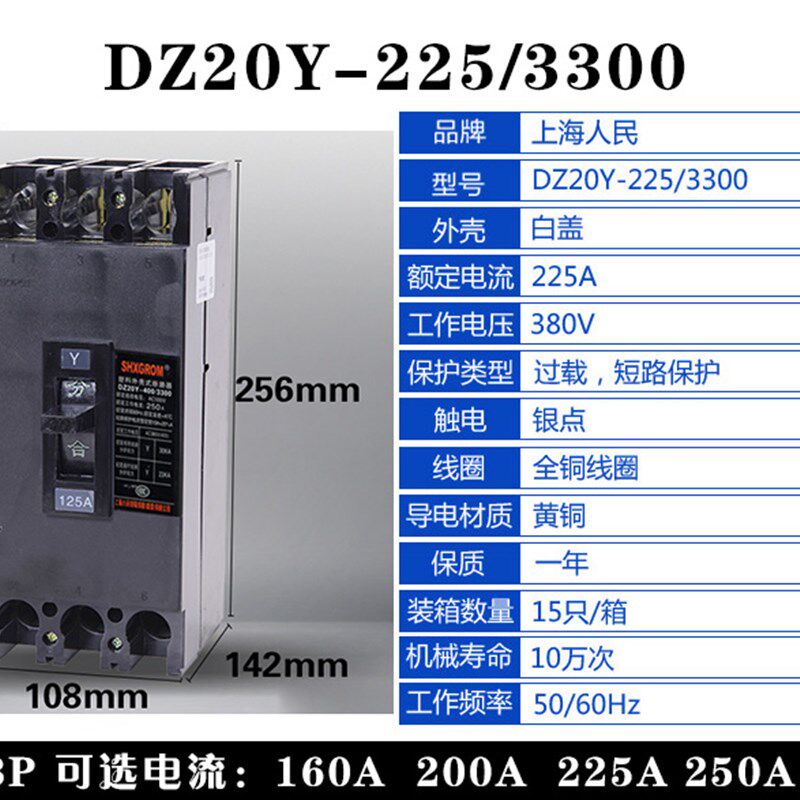 📚 塑壳断路器DZ20Y3极塑n壳 老款 100A 225A 400A 630A 短路保护开