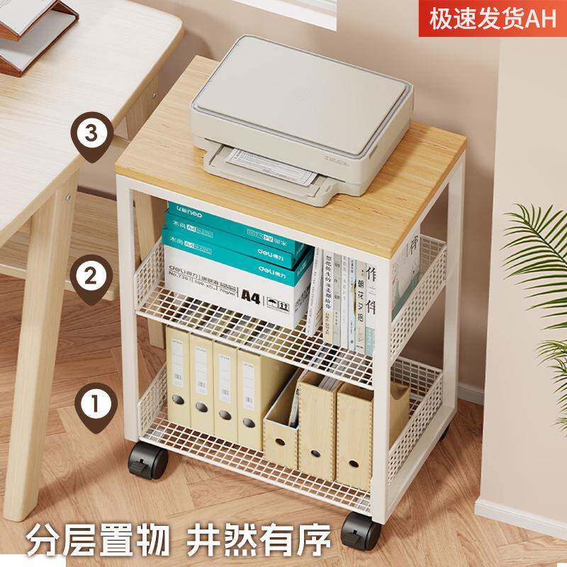 📚 打印机置物架办公桌收纳架子边放带置柜落地移动轮书other架桌小