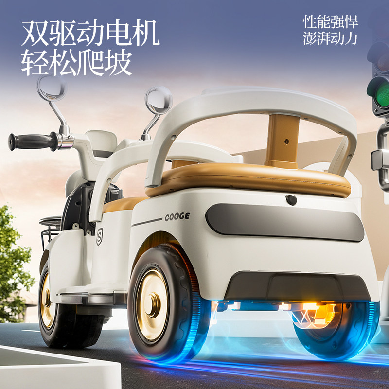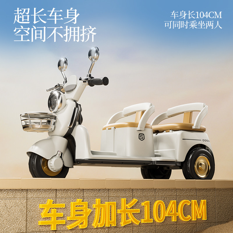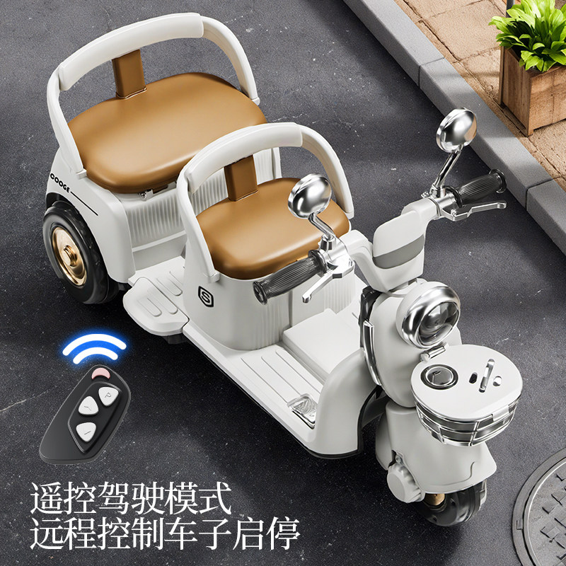 📚 儿童电动摩托车三轮车可坐大人男女宝宝车小孩充电双人遥控玩具车
