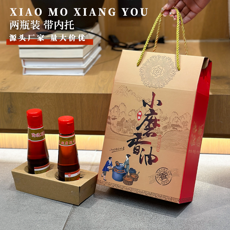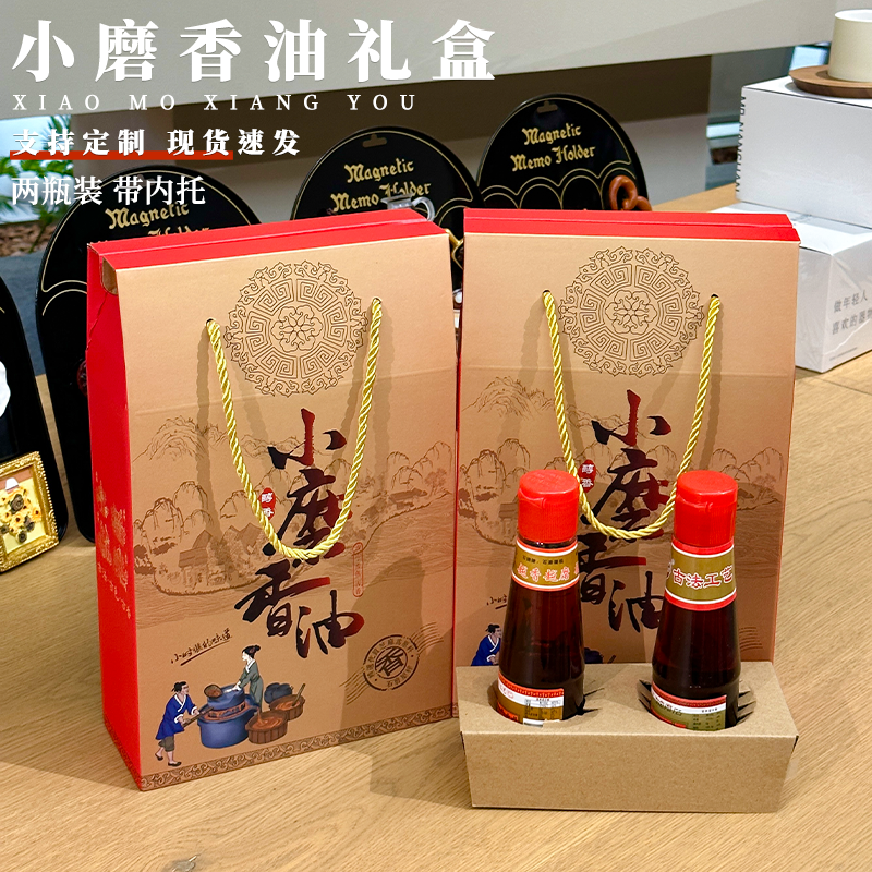 📚 高档小磨香油礼盒包装盒香油通用内托两瓶装空盒手提纸盒批发定制