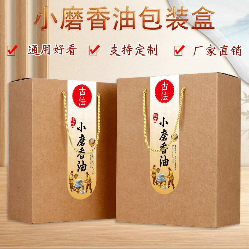 📚 高档小磨香油包装盒礼盒纯手工自榨油礼盒花生油两瓶装空盒定制