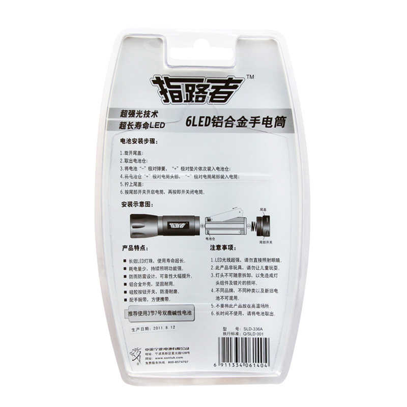 📚 双鹿指路者 手电筒6LED 铝合金壳 家用户外骑行 送4节7号碱性电池