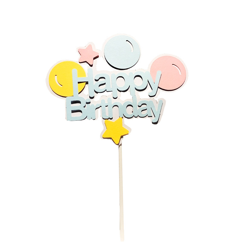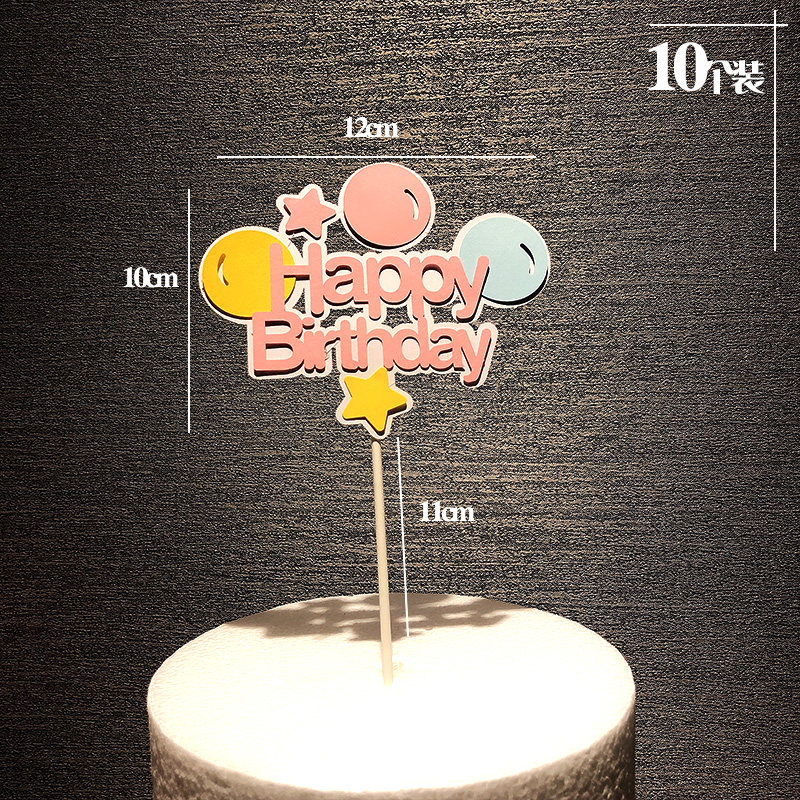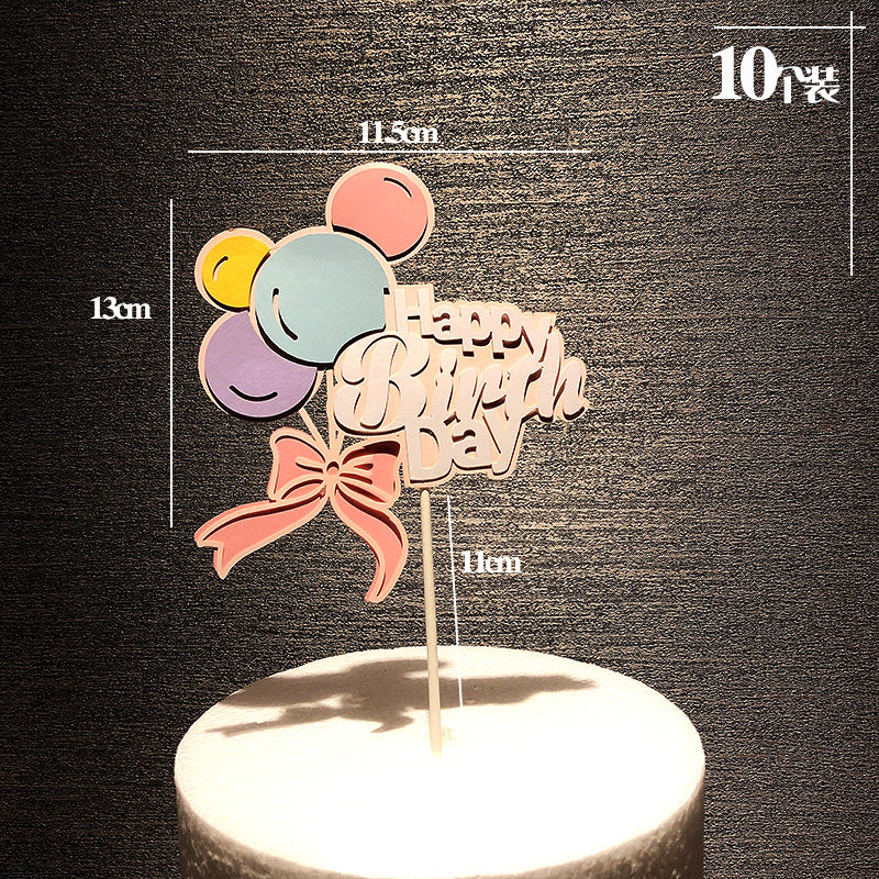 📚 蛋糕装饰创意小清新彩色小气球蝴蝶结五角星马卡龙hb插件生日插牌