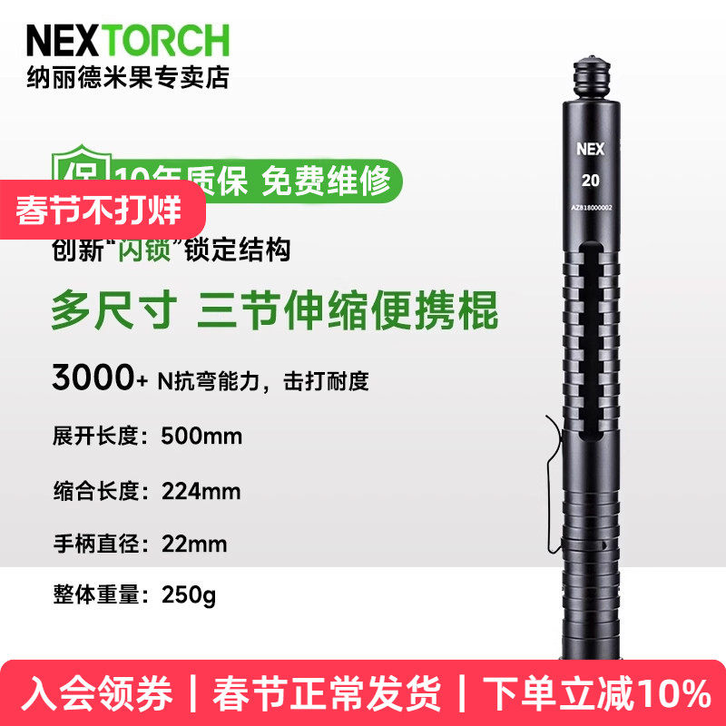 📚 纳丽德防身伸缩棍便携机械棍车载汽车破窗器甩棍防卫武器三节棍
