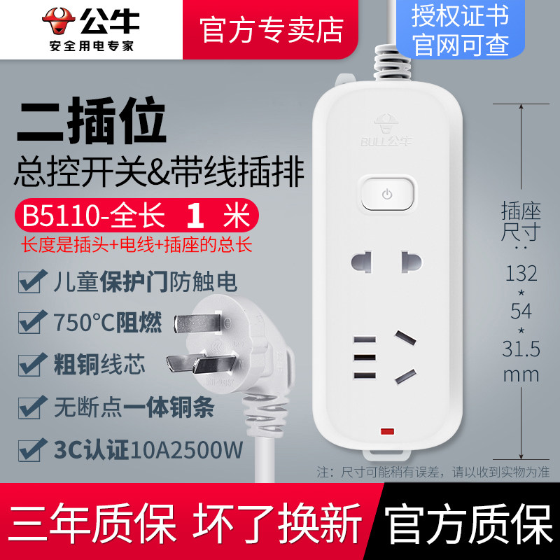 📚 公牛插座家用排插小插线板电瓶车延长线洗衣机电脑电视风扇拖线板