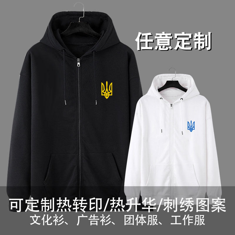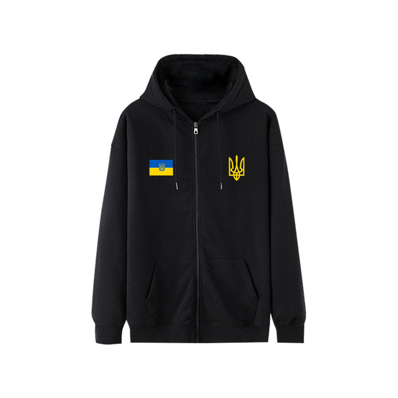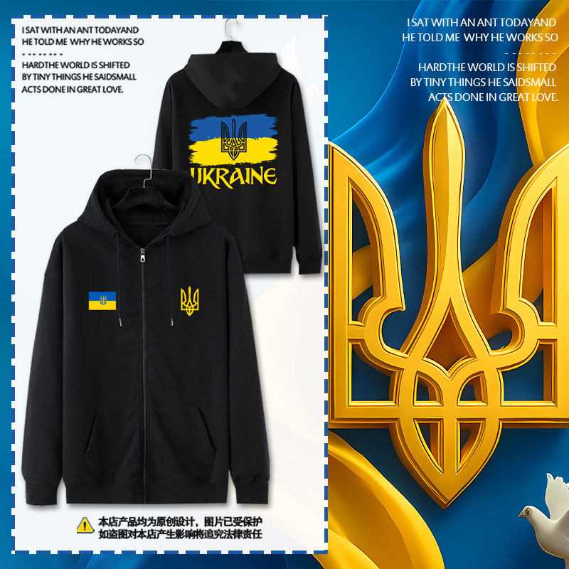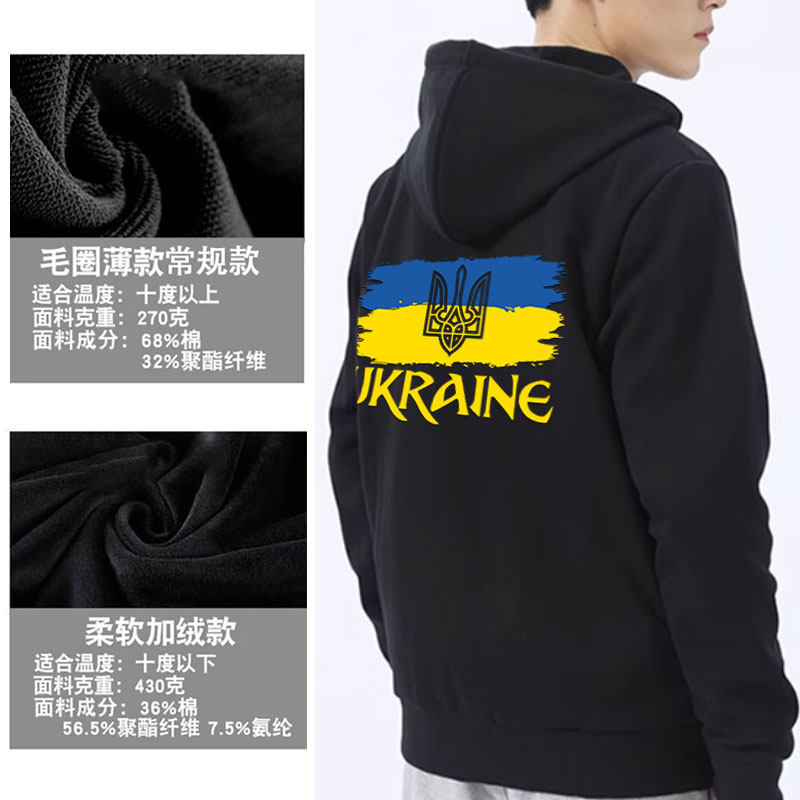 📚 乌克兰Ukraine国家标志三叉戟国家队开衫卫衣男女拉链袋连帽外套