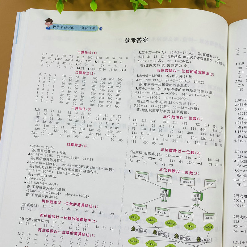 📚 三年级下册数学专项训练除数是一位数的除法练习册人教版通用版口算除法笔算除法两位数三位数除以一位数的除法计算应用题解决问题