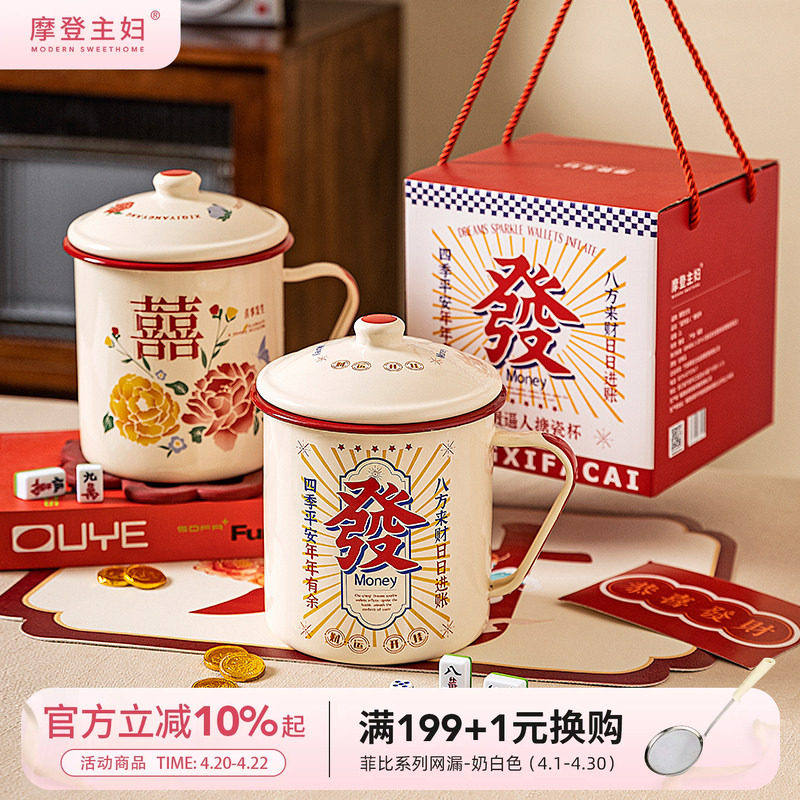 📚 摩登主妇搪瓷杯大号大茶缸泡面杯子女漂亮喝水杯带盖马克杯伴手礼