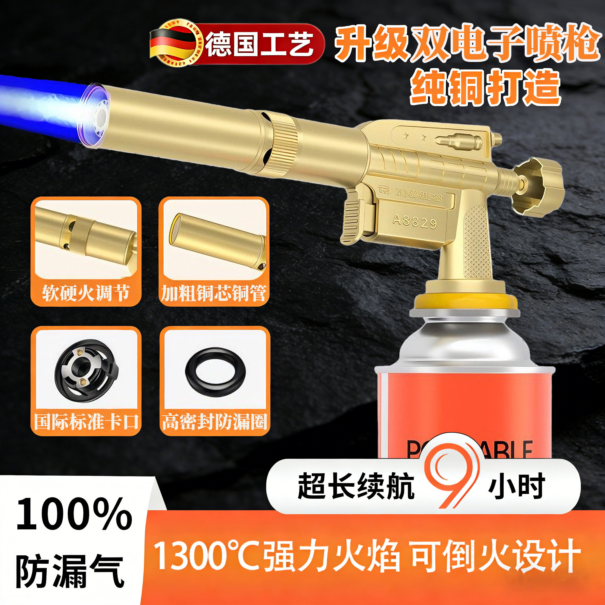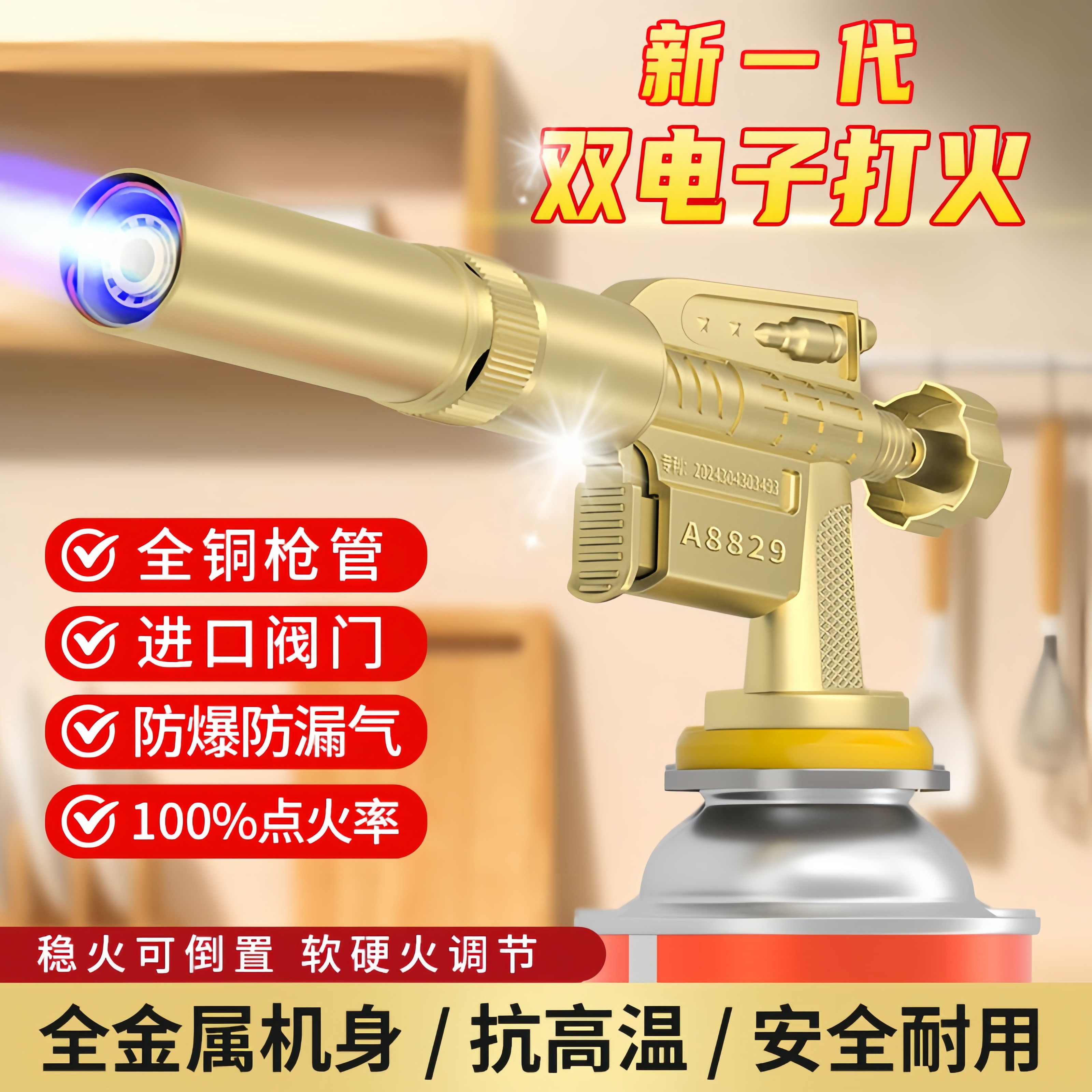 📚 全铜喷火枪双电子手持卡式气罐火喷枪家用烧猪毛喷火烤枪点火器枪
