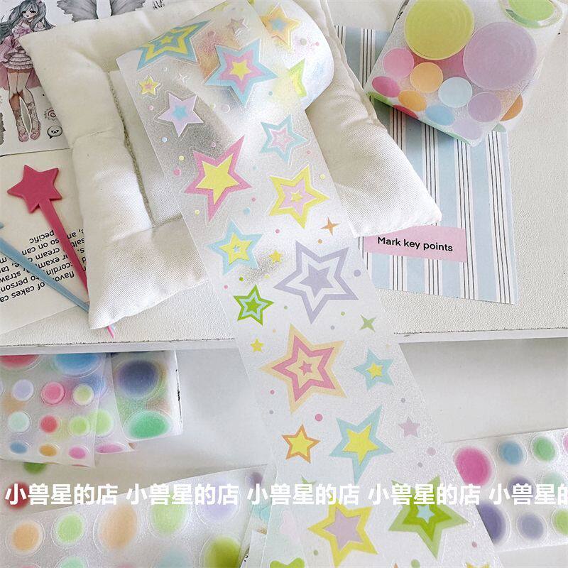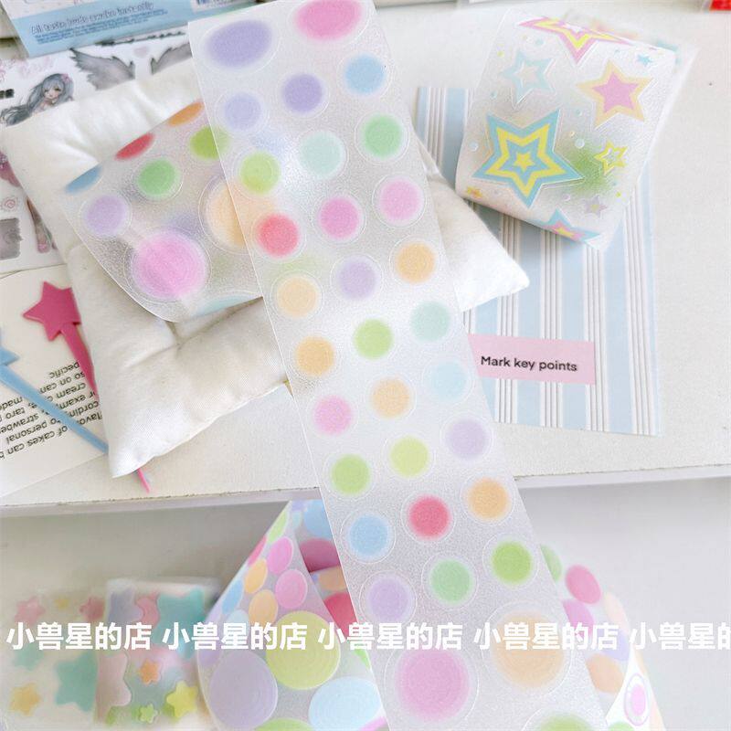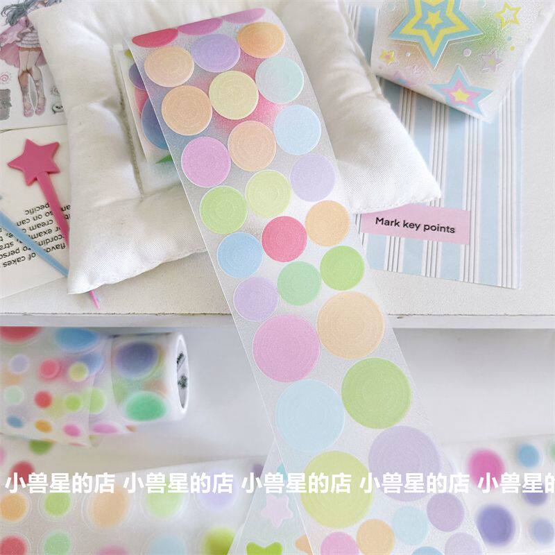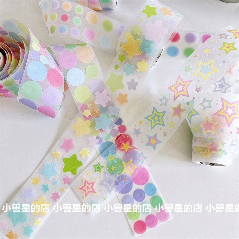 📚 彩色基础百搭同心圆星星deco切膜贴纸手账装饰圆点整卷胶带贴纸卷