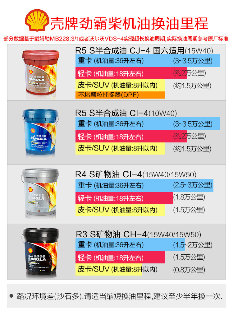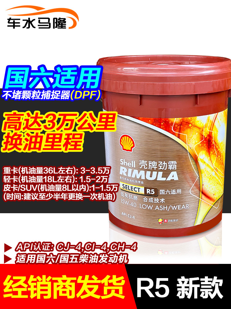 📚 壳牌柴油机油正品R5 CJ4劲霸 适用国六国五DPF CK-4 18L合成油CI4