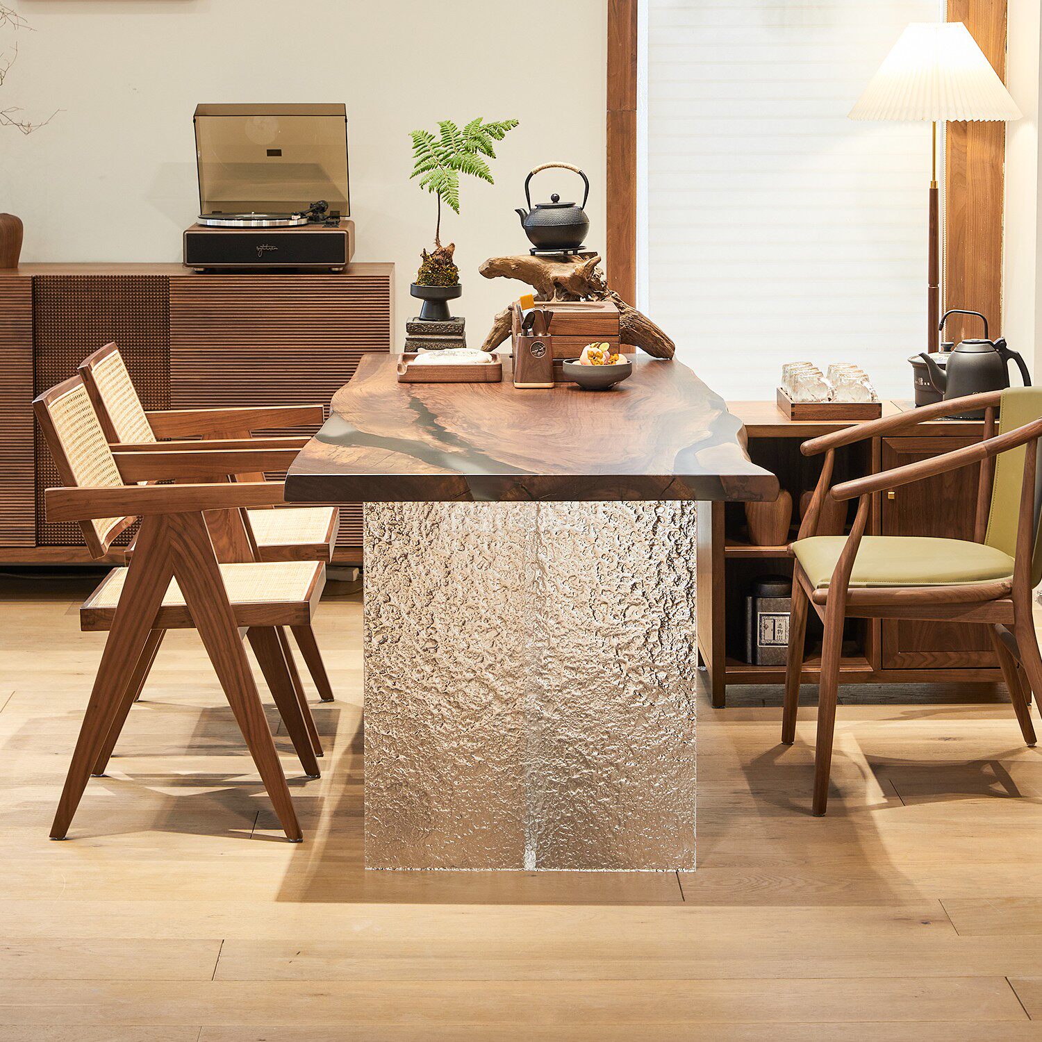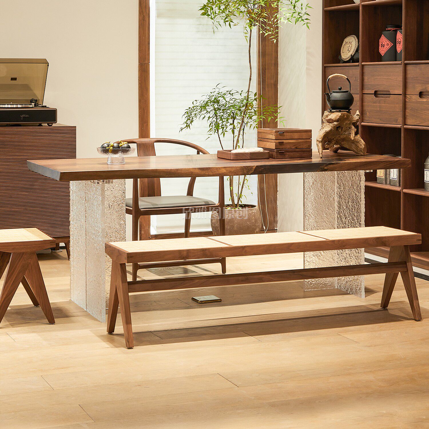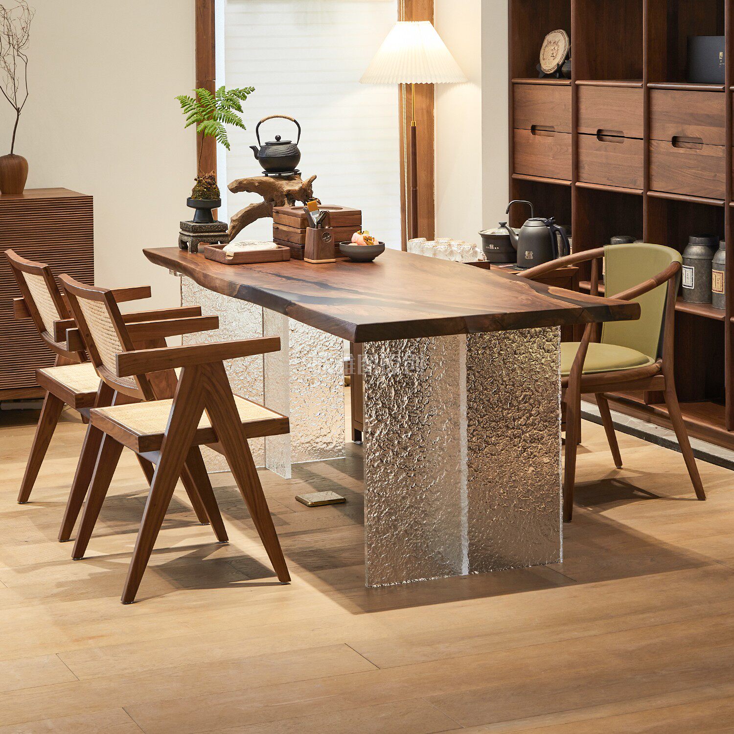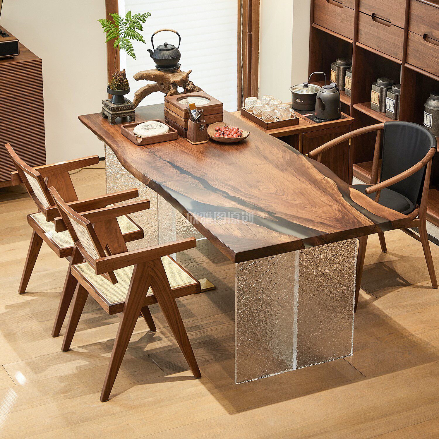 📚 北美黑胡桃木茶桌原木大板桌子实木餐桌会所大班台书案书桌办公桌