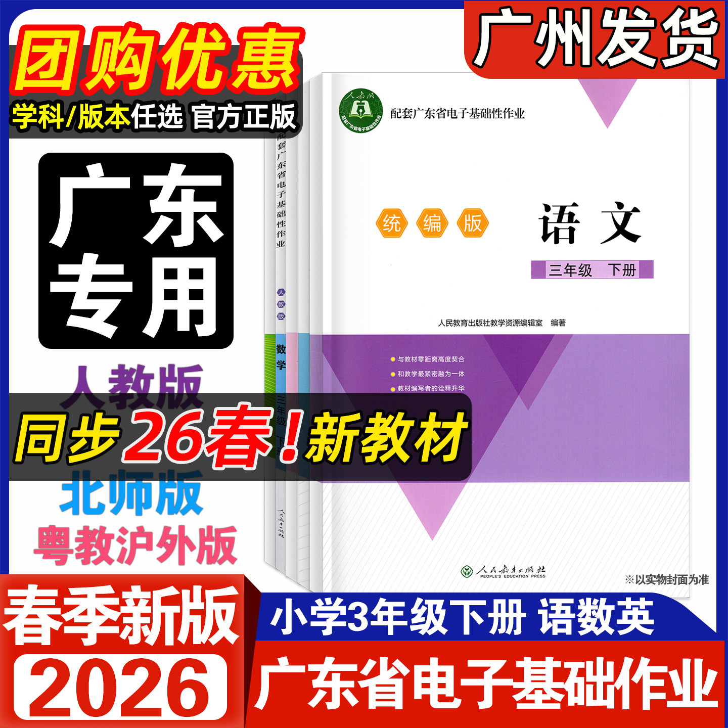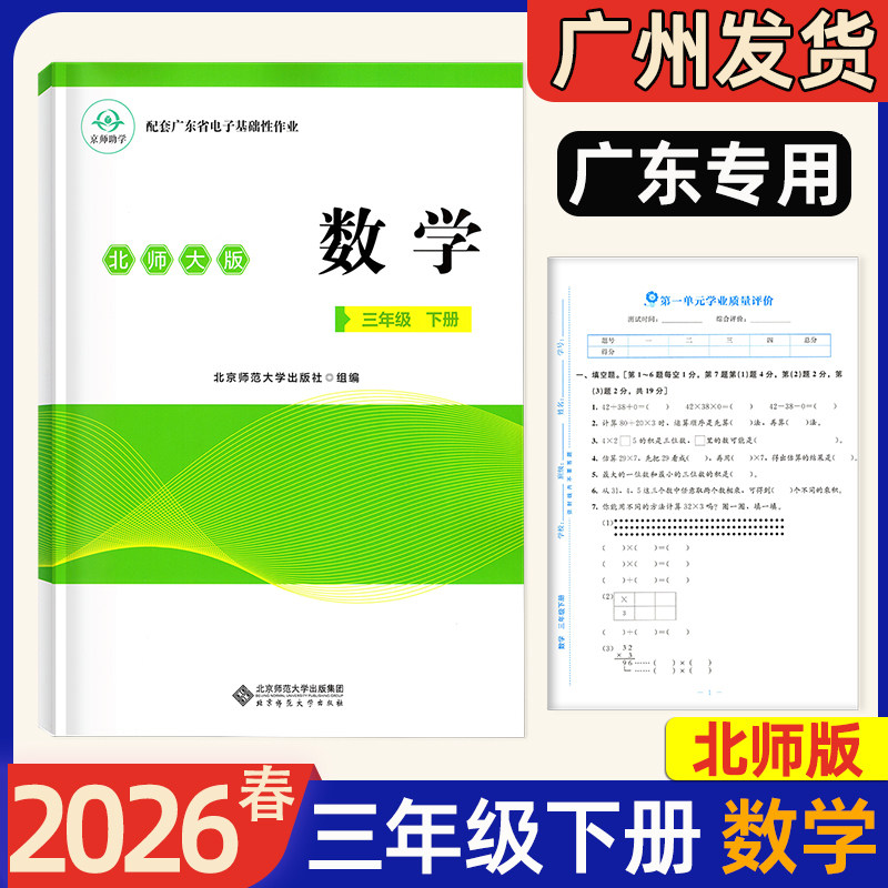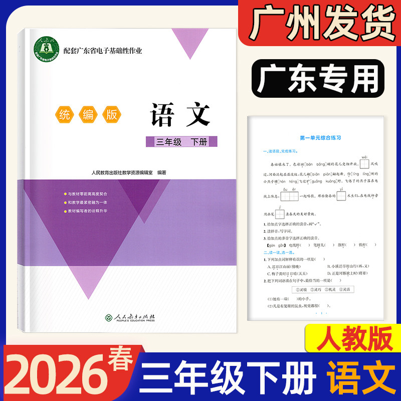 📚 2026春新版配套广东省电子基础性作业三年级下册 语文数学人教RJ北师大BS英语人教PEP江门适用粤教沪外粤人民版小学3年级课堂同步