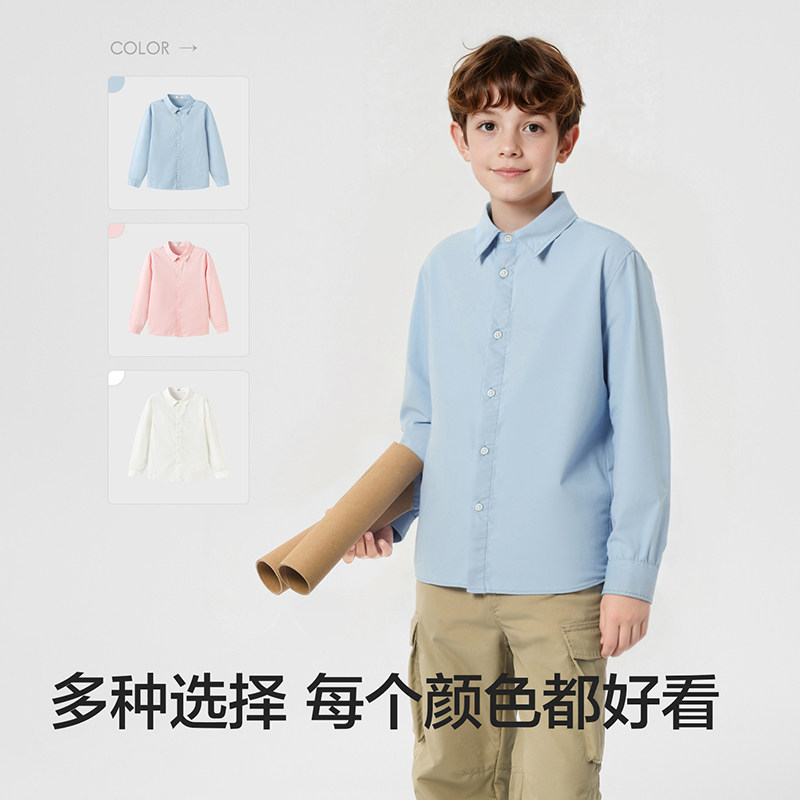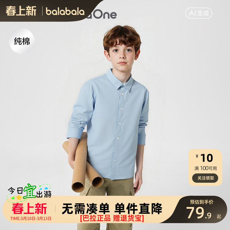 📚 巴拉巴拉童装男童长袖衬衫宝宝2026新款春装纯棉亲肤纯色衬衣时尚
