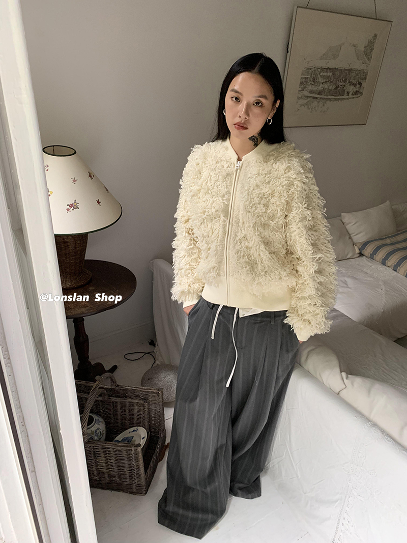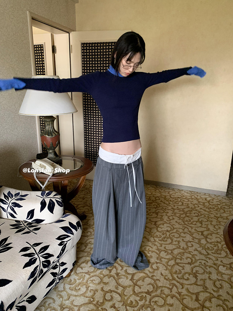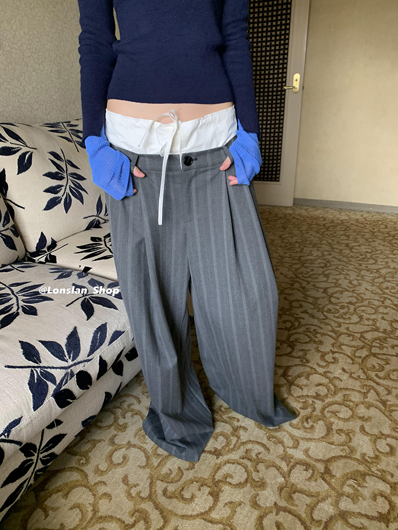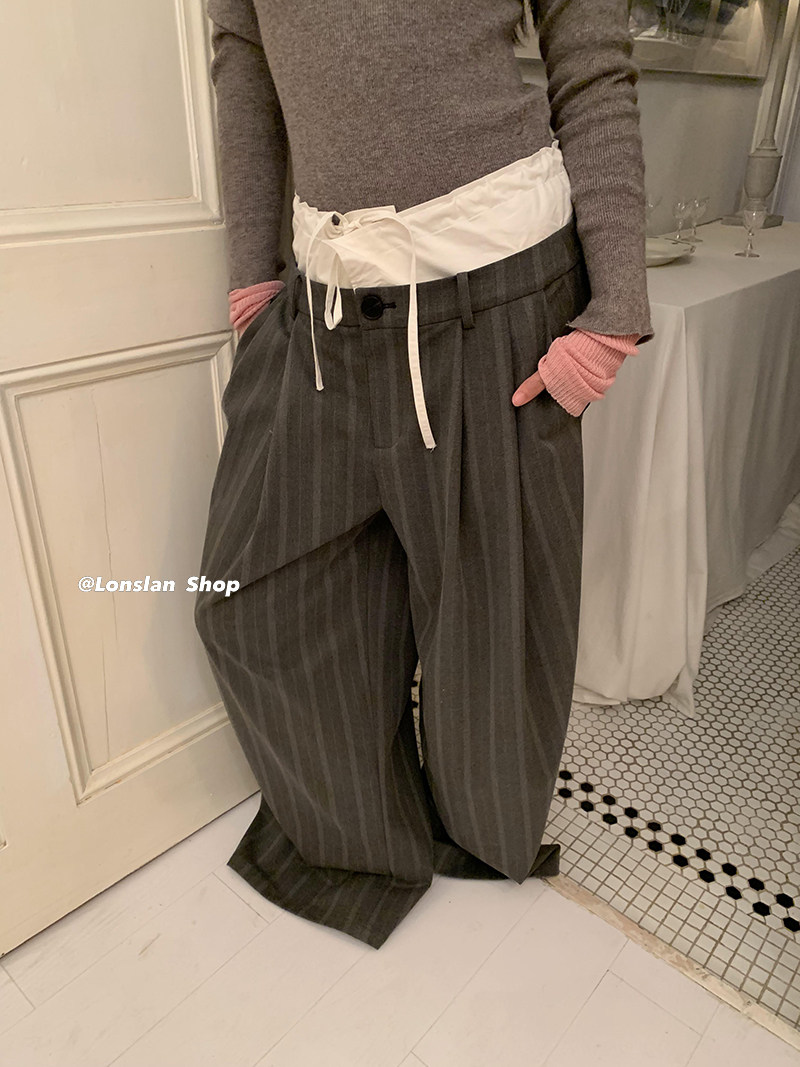 📚 LONSLAN 2026春季新款百搭竖条纹宽松直筒阔腿休闲裤长裤女