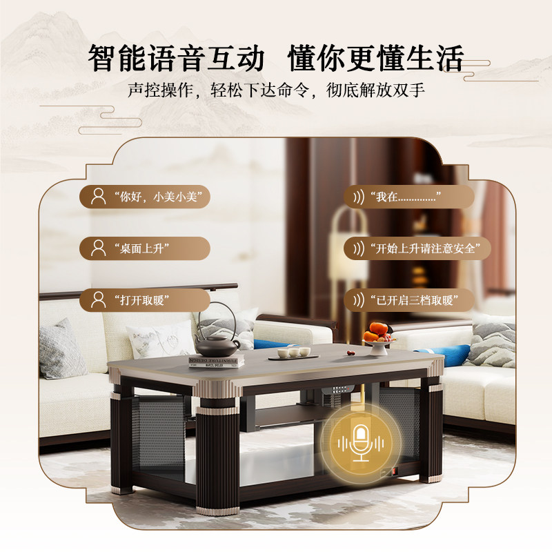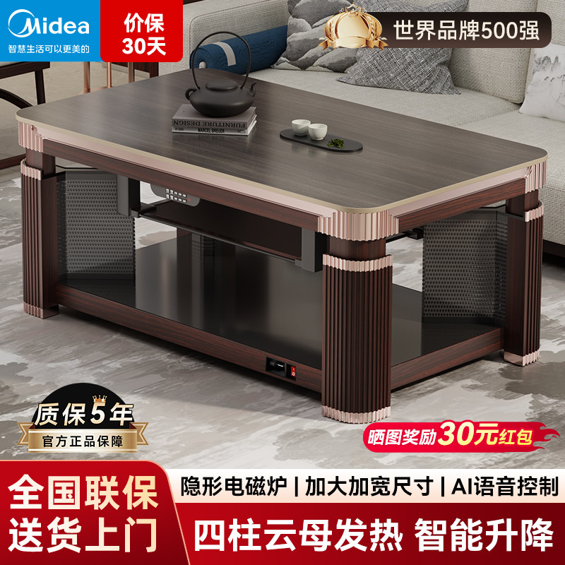 📚 美的中式取暖桌家用2025新款贵州客厅电炉茶几一体四柱加热烤火桌