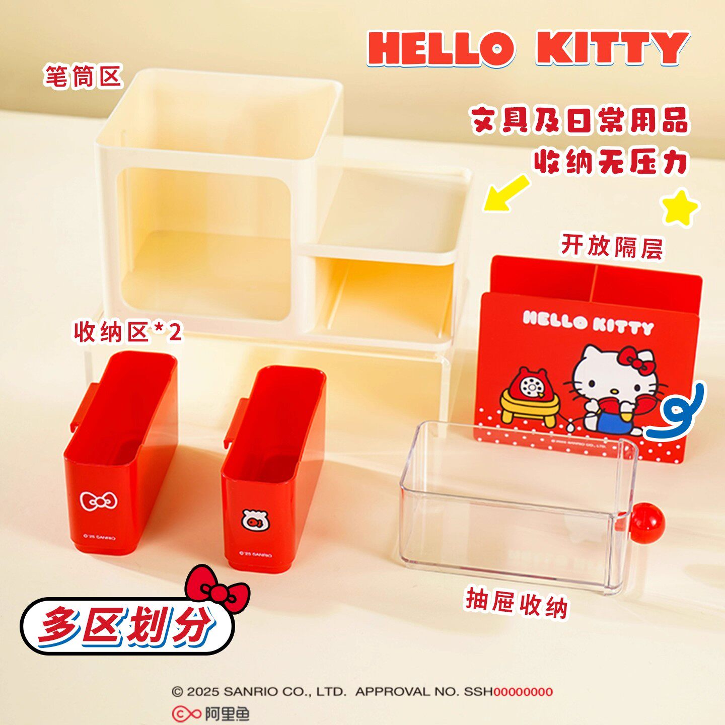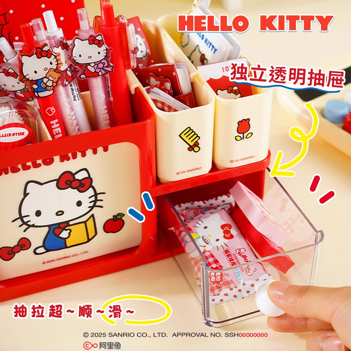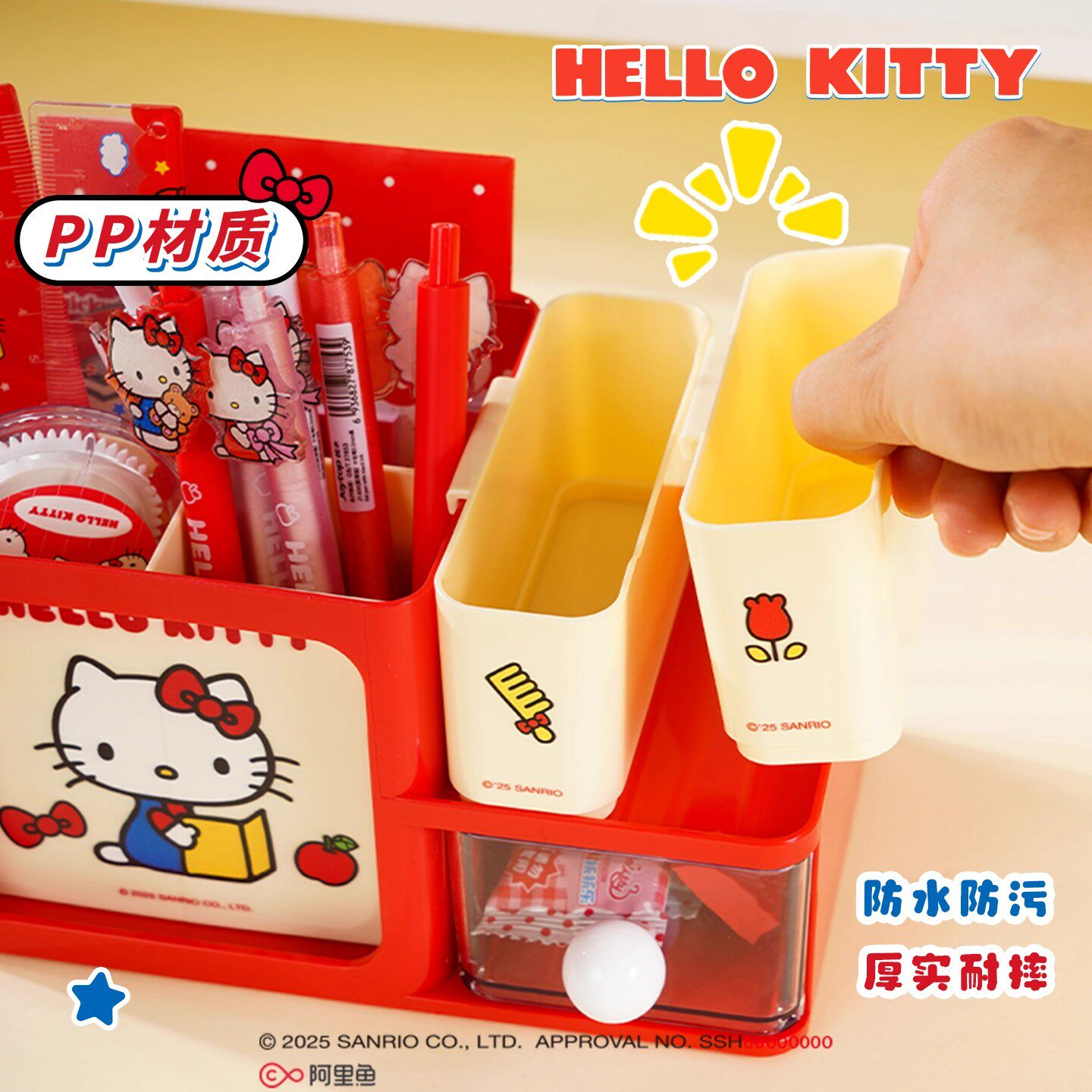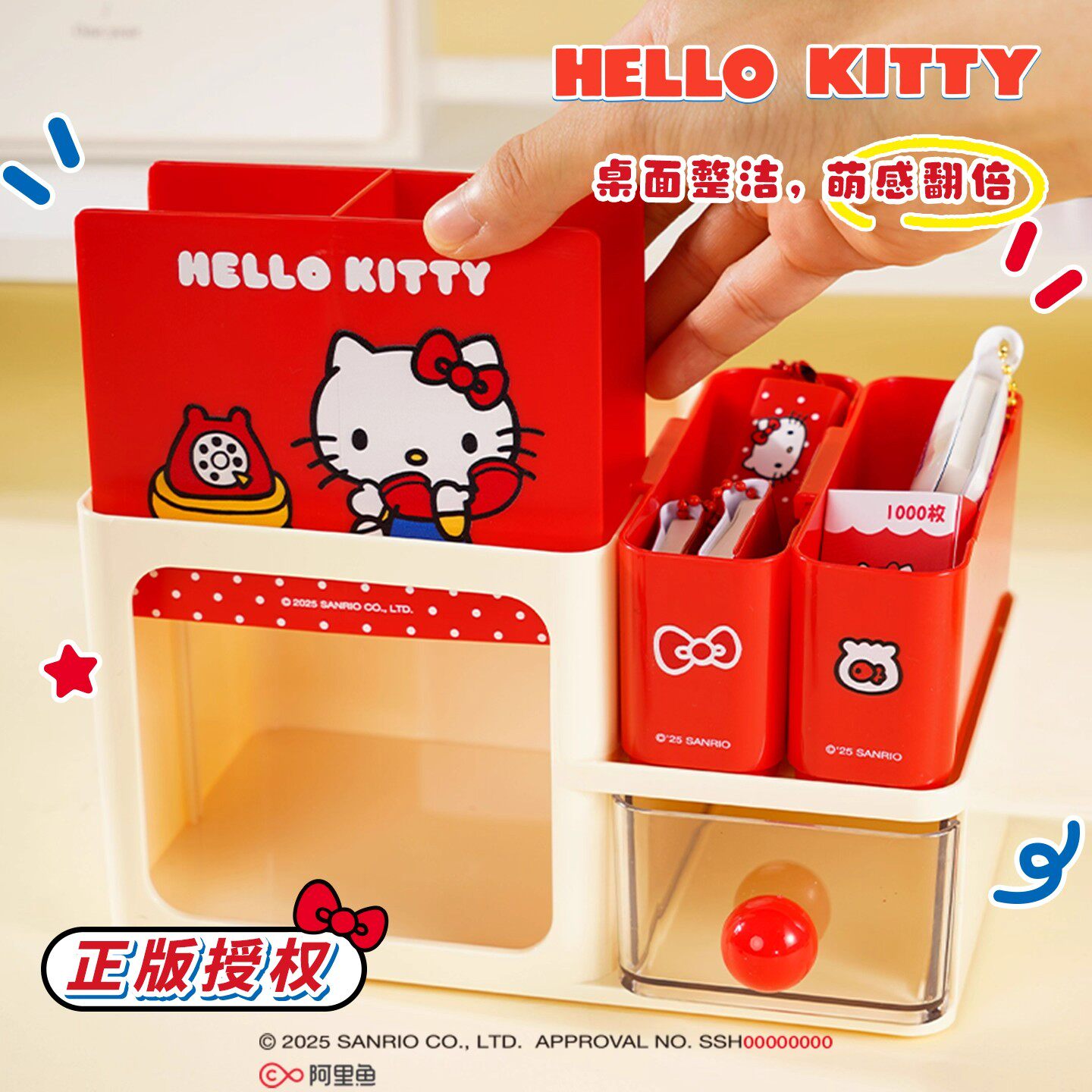 📚 正版凯蒂猫多功能笔筒抽屉式桌面分区收纳盒helloKitty儿童女孩卡通可爱宿舍书桌收纳置物架办公室学生文具