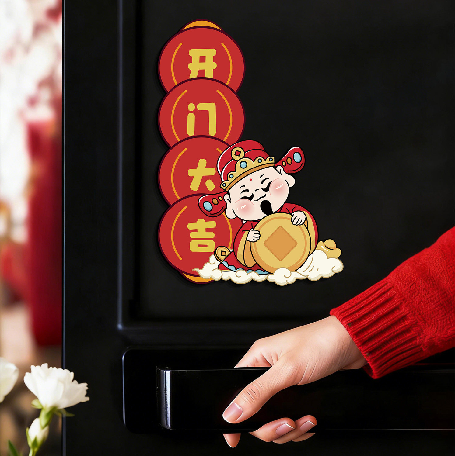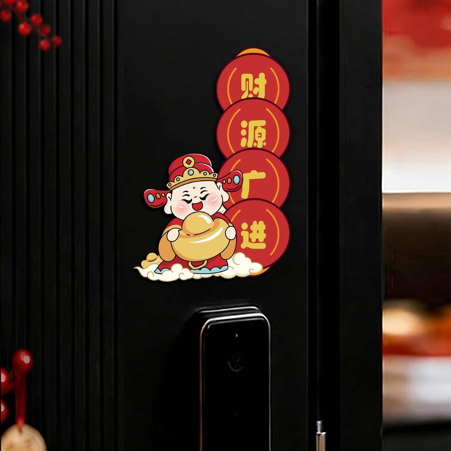 📚 财神到家门贴2026新年春节氛围布置入户门磁吸贴画智能锁对联装饰