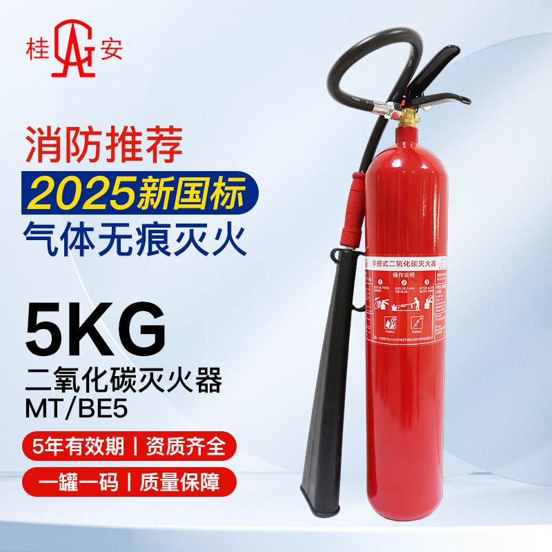 📚 桂安25年新国标5KG手提式二氧化碳灭火器 合金钢 MT/BE5 广东平安